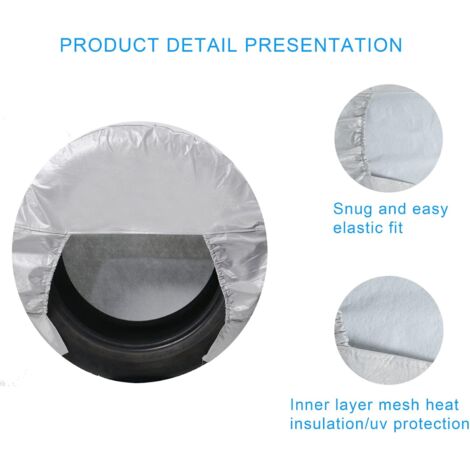 Couleur : conforme à l'image. * Lors du stationnement, protégez les pneus et les roues du soleil, de la poussière, de la rouille et de divers effets météorologiques. *Matériau : Oxford + polyester. 【Large application】Convient pour des diamètres de 68,6 à 73,7 cm, cette housse de pneu est compatible avec divers véhicules, y compris les camping-cars, camions, voitures, coffres, remorques et roues de camping-car. * Modèles applicables : Jeep, camping-car, camion, voiture, coffre, remorque, roues de camping-car. TCP Global Lot de 4 housses de pneu en toile Oxford imperméable Il empêche efficacement l'oxydation, l'exposition au soleil et les dommages causés par le gel, longue durée de vie. Il les protège du soleil, de la poussière, de la rouille et de divers effets météorologiques, les gardant en parfait état pour toutes les saisons. Les housses de protection de roue INHHUB sont conçues pour offrir une protection complète à vos pneus et roues. Fabriquées en polyester de haute qualité avec une doublure en coton épais, elles sont imperméables et extrêmement durables Protection Pneus Imperméable Lot De 4 Housses De Pneu De Camping-car, Crique De Pneu Housses De Pneus Imperméables *Taille : convient pour les pneus de 68,6 à 73,7 cm de diamètre. Facile à installer, à démonter et à nettoyer. EN STOCK : Lot de 4 housses de pneu imperméables pour voitures, camping-cars et camions - Convient pour un diamètre de 68,6 à 73,6 cm, jalleria-A124-04224 pas cher. Livraison rapide partout en France * Convient pour les pneus de 68,6 à 73,7 cm de diamètre. Contenu de l'emballage : 4 housses de pneu de voiture. Doublure en coton Oxford imperméable pour éviter l'oxydation des pneus, l'exposition au soleil et les dommages causés par le gel. Facile à utiliser : cette housse de pneu est conçue pour une installation et un retrait sans tracas.