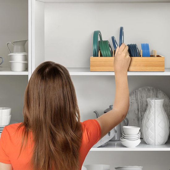Support de rangement extensible pour couvercles de casseroles avec 10 séparateurs réglables, organiseur extensible pour ustensiles de cuisine, étagère de rangement pour armoire de cuisine, adapté aux poêles à frire, planches à découper, plaques de cuisson, accessoires de cuisine (blanc) Couleur : blanc Matériau : acier au carbone Poids : 1 200 g Dimensions : 57 × 18 × 18,5 cm / 22,44 × 7,09 × 7,28 pouces Caractéristiques spéciales : amovible, extensible Convient pour : couvercles de casseroles, poêles à frire, planches à découper, plaques de cuisson, accessoires de cuisine Contenu de l'emballage : 1 × support pour couvercles de casseroles Rangement flexible auto-adaptable : cet organisateur polyvalent pour casseroles et poêles s'adapte aux ustensiles de cuisine de toutes tailles. Avec 10 séparateurs réglables, personnalisez votre organisateur pour garder les casseroles et poêles triées et facilement accessibles 【Matériaux haut de gamme】 : notre support pour couvercles de casseroles est fabriqué en acier au carbone résistant à la rouille, ce qui lui confère une grande durabilité et une résistance à la flexion et à la corrosion pour une durée de vie prolongée. Solides et résistants à la rouille, ils peuvent être réorganisés librement pour maintenir en toute sécurité des articles de différentes tailles. L'installation est simple et rapide. Organisateur De Placard Rangement Couvercle Avec 10 Compartiments Réglables, Porte Range Poele Organisateur Couvercles Extensible Il est particulièrement adapté aux espaces compacts tels que sous les éviers ou dans les placards étroits, permettant ainsi de gagner un espace précieux. Créez de manière flexible différents compartiments pour ranger les couvercles de casseroles, les poêles, les planches à découper ou les épices, et éliminez le désordre. Combinez les unités pour agrandir l'espace de rangement ou utilisez-les comme deux étagères indépendantes pour optimiser l'espace et maintenir la cuisine en ordre. Placé à côté du plan de travail, il sert également d'excellent panier d'égouttage. Joejis Porte-couvercles de casseroles Porte-poêles pour Les séparateurs maintiennent solidement les plaques de cuisson et les planches à découper, garantissant ainsi un rangement sûr des couvercles et des ustensiles de cuisine. Extensible et adaptable, il permet de réduire le désordre dans votre cuisine, que ce soit dans les armoires, le garde-manger ou sur le plan de travail. Les avis sont classés d’abord par ordre de pertinence, ensuite par ordre chronologique