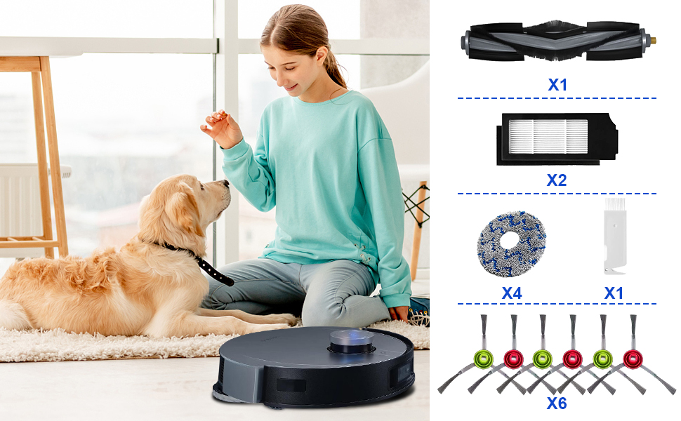 Compatibilité : compatible avec aspirateur robot ECOVACS pour DEEBOT T80 pour OMNI. Gardez votre Ecovacs Deebot T80 Omni en parfait état avec ce kit d'accessoires complet ! 18 pièces : 1 brosse principale, 4 filtres HEPA, 2 rouleaux de nettoyage, 4 brosses latérales, 6 sacs à poussière, 1 brosse de nettoyage Caractéristiques : *Compatibilité parfaite : ces accessoires de rechange sont conçus spécifiquement pour les aspirateurs ECOVACS pour DEEBOT T80 pour OMNI, pour garantir un ajustement précis et une performance optimale adaptée aux besoins de votre appareil. Nombre de pièces : 14., Contenu de l'emballage : 1 brosse principale, 2 rouleaux de lingettes, 4 brosses latérales, 4 filtres HEPA, 6 sacs à poussière, 1 outil de nettoyage Vie saine avec filtration HEPA : équipé de filtres HEPA lavables qui capturent 99 % des cheveux et de la poussière, cet ensemble d'accessoires améliore la qualité de l'air intérieur pour un espace de vie plus propre et plus sain. Performance de nettoyage efficace : la brosse principale fabriquée à partir de caoutchouc ABS robuste capture efficacement la poussière et les débris tandis que les brosses latérales accèdent aux coins étroits, offrant un nettoyage en profondeur dans toute la maison. * Filtration HEPA avancée : les filtres HEPA lavables sont capables de piéger 99 % des cheveux, de la poussière, contribuant à améliorer la qualité de l'air intérieur et de garantir un environnement de vie plus sain. KIT D'ACCESSOIRES POUR Deebot T20 Omni, PièCes de Rechange pour Taille : sac à poussière de grande capacité de 3 L., Couleur : non. * Puissance de nettoyage efficace : la brosse principale, fabriquée en caoutchouc ABS durable, tourne efficacement pour capturer la poussière et les débris, tandis que les brosses latérales atteignent les coins pour un nettoyage en profondeur des zones difficiles d'accès. Matériau : caoutchouc ABS, microfibre, fibres soufflées par fusion, tissus non tissés. 18 PièCes pour DEEBOT X1 OMNI TURBO T10 OMNI Robot Aspirateur... Kit Rechange Robot Aspirateur Accessoires Pour Ecovacs Deebot T80 Omni, 1 Brosse Principale, 6 Pièces Compatibles T80 Caractéristiques : Nom du produit : accessoires pour aspirateur.
