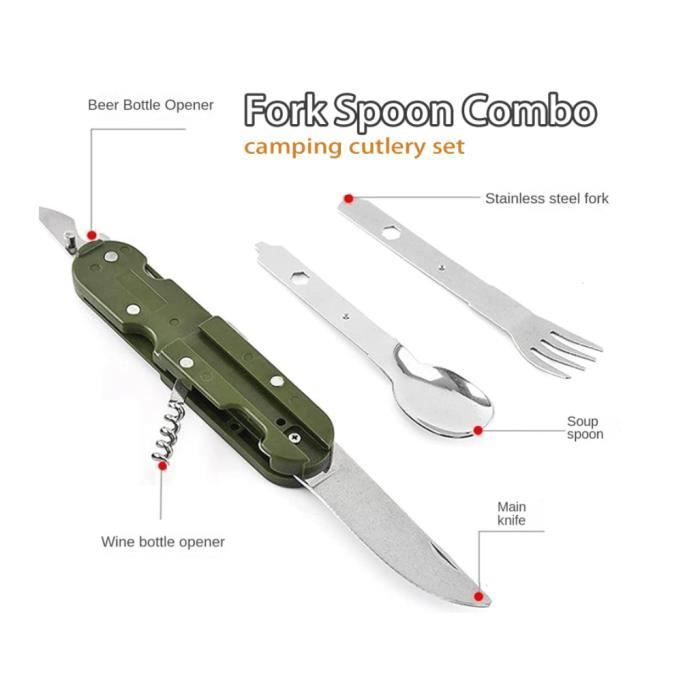 Caractéristiques: Ce couvert multifonction camping combine couteau, cuillère, fourchette, ouvre-bouteilles et ouvre-boîtes, parfait pour le camping, la randonnée ou la pêche. La vaisselle pliante en acier inoxydable 5 en 1 est un ensemble d'outils de camping multifonctionnel, idéal pour les pique-niques et les aventures en plein air. Fabriquée en acier inoxydable de haute qualité, elle se distingue par sa durabilité et son savoir-faire exceptionnel Set de couverts d'extérieur fabriqué en acier inoxydable de haute qualité, il est sans bavures, facile à nettoyer et résistant à la corrosion. En raison de la mesure manuelle, il peut y avoir une erreur de 0,5 à 2 cm. Que ce soit pour ouvrir une bouteille de bière, couper un sandwich ou manger une soupe, ils simplifient la vie en plein air Ouvre-bouteille Ouvre-boîte Intégré Ensemble De Vaisselle Occidentale En Acier Inoxydable,couteau,fourchette,cuillère,service De Set Camping 5 En 1 Multifonction Son design pliable et son sac en nylon permettent un rangement compact. 【Ensemble complet】Le set de couverts de camping inclut 2 outil multifonction et un sac de rangement. 【Matériaux de haute qualité】Couverts camping inox pliable convient fabriqué en acier inoxydable de haute qualité, il est résistant à la corrosion, facile à nettoyer et sans bavures Idéaux pour manger des salades, des plats en sauce ou ouvrir des boissons, ils répondent à tous les besoins culinaires lors de vos escapades en plein air. Lot de 2 paires de baguettes allongées en bois multifonctions pour Spécification: Marque: GVSS Matériel: Acier inoxydable Caractéristiques: 5 en 1 Dimensions pliées: 14 x 3,5 x 2 cm Quantité: 2 pièces Emballage inclus: 2 x Couverts de Camping Pliable Note: En raison de la différence de lumière et d'écran, la couleur de cet article peut être légèrement différente de celle de l'image. 5 en 1: Ce couteau cuillere fourchette tout en 1 allie praticité et robustesse, idéal pour couper de la viande, manger des légumes ou ouvrir des boissons, il se replie facilement et se range dans un sac de protection