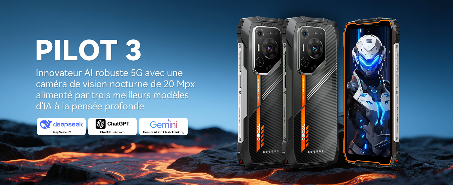 📷【Application Doke Al Image】Transformez vos photos avec facilité et créativité grâce à l'application DK ImageX sur OSCAL PILOT ! OSCAL Pilot 3 AI Android 15 Téléphone Portable Incassable 2025, 36Go 256Go/2To Telephone 5G,6.78" FHD ,50MP AI Caméra, 7500mAh Smartphone Incassable Etanche, Dual SIM,4G LTE,5G WiFi,NFC,OTG,GPS, Noir [Classe énergétique A 🚀【Le premier téléphone 5G Al Rugged au monde】 Avec 4 packs d'applications Doke Al Pro développés par les 3 meilleurs modèles d'IA au monde, vous pouvez utiliser l'appareil en mode mains libres et le contrôler par la voix. Zögern Sie nicht, uns bei Fragen zu kontaktieren, wir werden uns innerhalb von 24 Stunden bei Ihnen melden. Garantie- und Reparaturzentrum in Europa, es gilt eine 24-monatige Garantie. La caméra de vision nocturne 20 MP vous permet de capturer de beaux moments même dans l'obscurité, et la caméra frontale 32 MP est dotée d'un mode beauté. Il prend en charge la fonction OTG, ce qui vous permet de l'utiliser comme batterie externe pour recharger d'autres appareils électroniques. The brand-new OSCAL PILOT 3 is now officially available worldwide with an early bird launch promo on AliExpress. This is the world’s first high-end rugged 5G smartphone that combines DeepSeek R1, ChatGPT-4o mini, and Gemini AI 2.0 in one device, offering a new level of smart assistance Boîte à outils de niveau professionnel développée en interne pour une facilité d'utilisation optimale. OSCAL Marine 2 Telephone Incassable 24GB+256GB/2To, 11000mAh Telephone écran 6.78 Pouces OSCAL Pilot 3 AI Android 15 Movil Irrompible 5G, 36GB+256GB/2TB Teléfono Movil Resistente, Cámara AI 50MP+32MP, 6.78" FHD+, 7500mAh Smartphone Todoterreno,4G+5G Telefono NFC,Dual SIM,OTG,GPS,FM, Negro Smartphone Incassable 5G Android 15 📷【Caméra arrière 50 MP + caméra avant 32 MP】Le robuste Oscal pilot 3 est équipé d'un capteur d'image ultra haute résolution de 50 MP et de la technologie Smart ISO, qui permet d'obtenir des images plus détaillées et d'enregistrer des vidéos 4K. Vous pouvez avoir une conversation naturelle et fluide avec votre voix préférée parmi Ursa, Nova, Pegasus, Vega, Dipper, Eclipse, Lyra, Orion, Orbit ou Capella, et la garder vivante. 🚀【36 Go de RAM + 256 Go de ROM + MTK Dimensity 6300 Dual 5G Android Phones 15】. Révolutionnez votre expérience en matière de vitesse et de performances grâce au chipset Dimensity 6300., Avec 12 Go de RAM de base fixe et 256 Go de ROM, le téléphone Android OSCAL PILOT 3 est idéal pour le multitâche. Et grâce à la technologie d'extension de la RAM du smartphone PILOT 3 outdoor, vous pouvez obtenir 24 Go de RAM virtuelle supplémentaires via les paramètres, pour une mémoire totale pouvant atteindre 36 Go.