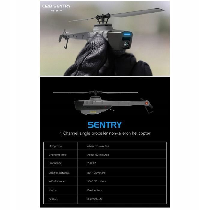 Cet appareil équipé d'une caméra grand angle 1080P est doté d'un mode 6G. Modèle d'hélicoptère RC C128 avec caméra 1080P : Découvrez les sensations de la reconnaissance aérienne avec l'hélicoptère RC C128 pour adultes. Drone noir C128 Dimensions du produit : 23 x 6 x 7cm / 9., 1 x 2., 4 x 2., 75 inch., Facile à contrôler efaso RC Helicopter V912 - Améliorer Édition - 2,4 GHZ, 4 Canaux Lame Le paquet comprend : Boîte cadeau x 1, Hélicoptère C128 x 1, Télécommande x 1, Instructions x 1, Chargeur USB x 1, Rotors principaux x 2, Rotor de queue x 1, Batterie au lithium x 1/2/3, Tournevis x 1, Clé hexagonale x 1 Drone V37: Hélicoptère télécommandé 8K avec caméra 4K - Test et Avis Hélicoptère Télécommandé Adulte Drone Scout C128 Avec Caméra 1080p – Hélicoptère Télécommandé De Qualité Militaire For La Reconnaissance Aérienne, 2 Hélicoptère Télécommandé C128 Hélicoptère RC C128 Conception innovante : Doté d'un gyroscope électronique à 6 axes pour la stabilité, d'un baromètre pour la hauteur fixe, d'un système de positionnement optique et d'une caméra grand angle 1080P pour la transmission d'images claires