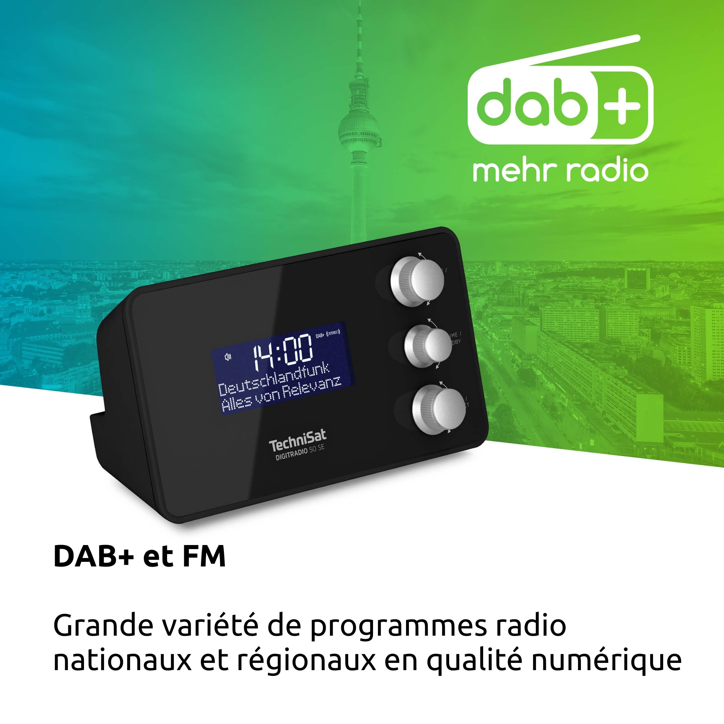 Pour une expérience d'écoute personnelle, le radio-réveil dispose d'une prise casque. TechniSat DIGITRADIO 50 SE Radio-réveil DAB, DAB , FM fonction réveil noir. En 1 fois. 56,17 €. 56 €17. En 4 fois. 14,42 TechniSat TECHNIRADIO 50., Radio réveil DAB+/FM. Réception stable : profitez d'un son cristallin avec la radio numérique DAB+ et la radio FM classique, complétée par des fonctions pratiques telles que RDS et PLL, enregistrez jusqu'à 40 stations préférées (20 DAB+ et 20 FM) Contenu de la livraison : TECHNIRADIO 50 avec antenne DAB/FM, bloc d'alimentation USB type C 5 V - 1 A, manuel d'utilisation (français non garanti), dimensions du produit (l x H x P) : 12,50 x 5,00 x 11,50 cm Fonctions personnalisables : utilisez la fonction snooze et mise en veille pour plus de commodité, réglez le rythme de l'alarme en fonction de vos besoins personnels La radio est adaptée pour la réception de stations de radio numériques via DAB+ et des stations analogiques via FM. TechniSat TechniRadio 3 Dab Radio (Dab+, F, Portable, Radio-réveil La fonction snooze permet de dormir encore quelques minutes de plus, tandis que la minuterie de veille accompagne le sommeil et éteint la radio après un temps prédéterminé. Avec son encombrement compact, l'appareil s'adapte à n'importe quelle table de chevet tout en séduit par une variété de fonctions. L'écran peut être réglé pour une luminosité optimale dans n'importe quel environnement. Réception stable : profitez d'un son cristallin avec la radio numérique DAB et la radio FM classique, complétée par des fonctionnalités pratiques telles que RDS et PLL Technisat Digitradio 52 Cd - Stereo Radio-Réveil Dab Avec Deux Alarmes Réglables (Dab+, Fm, Snooze, Minuteur De Sommeil, Écran Dimmable, Bluetooth, Fonction De Charge Sans Fil, Lecteur Cd) Noir reconditionné Avec 20 mémoires pour DAB+ et FM, vous gardez toujours le contrôle sur les stations préférées qui sonnent via le haut-parleur intégré.