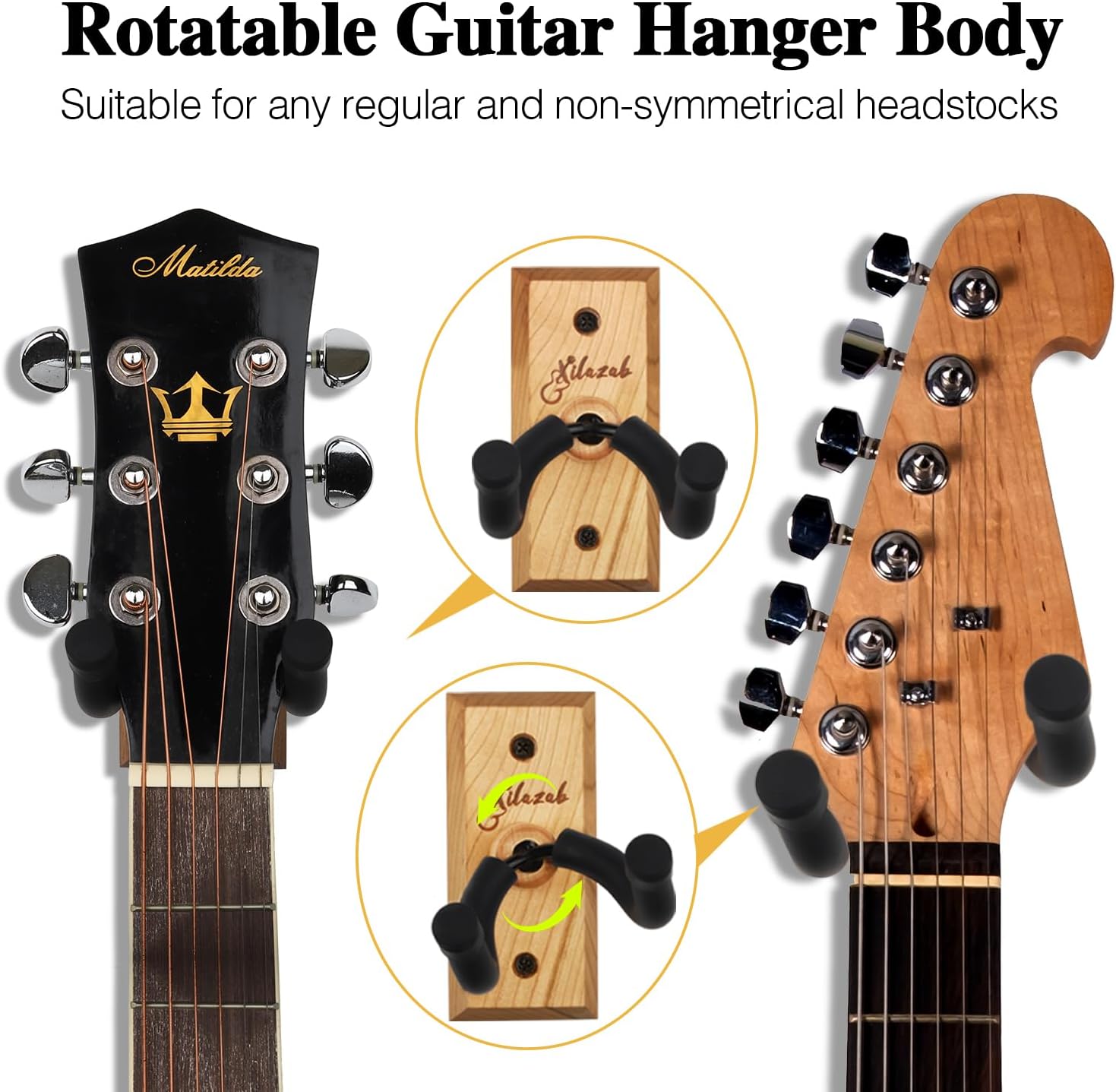 Support mural guitare à base Benchwood et 4 vis : Doté d'une base en hêtre massif agrandie (coupe naturelle, non stratifiée) et d'une fixation renforcée à 4 vis pour une stabilité multipliée par 4., Support renforcé jusqu'à 9 kg : Fabriqué en composite nylon + fibre de verre pour une résistance supérieure, ce support mural guitare garantit une stabilité durable. SUPPORT MURAL GUITARE – Melodie des iles Base à 4 vis AMÉLIORÉE = Stabilité multipliée par 4 Des pièces de rechange supplémentaires (1 de chaque) et un gabarit de positionnement sont fournis pour un montage rapide, précis et sans tracas. Grain de bois naturel unique : La base murale de chaque accroche guitare mural est façonnée en hêtre coupé naturellement, offrant une veinure du bois unique et un charme artisanal. Note : Inclinez votre guitare/basse à tête angulaire pour un support équilibré. Compatibilité étendue : Convient aux guitares et basses standard, ainsi qu'aux instruments plus larges comme les guitares électriques 7/8 cordes, guitares acoustiques 12 cordes, basses 5/6 cordes, guitares baryton, oud, etc. Grâce à son système auto-bloquant par gravité, plus besoin de stresser : tu accroches ta guitare, elle se verrouille toute seule - zéro risque de chute. Il... Le support mural pour guitare est équipé d'un système de verrouillage automatique par gravité qui s'active dès que vous y accrochez votre instrument, garantissant une parfaite sécurité et évitant tout risque de chute accidentelle. Support Guitare Mural Verrouillage Auto (Lot de 2), Base Support Pour Guitare Murale Support Mural Guitare Support Guitare Mural En Hêtre - Lot De 4 - Rotatif 360° Accroche Guitare Mural Porte Guitare Mural Conception Auto-Lock sensible : Le support mural guitare utilise un système de verrouillage automatique par gravité qui se déclenche instantanément pour maintenir votre instrument en place. Renforcé aux points de contrainte critiques Le support mural pour guitare est fabriqué en composite de nylon renforcé de fibres de verre et a été amélioré par l'ajout de nervures de renfort, offrant une durabilité supérieure à long terme, avec une capacité de charge fiable allant jusqu'à 9 kg (environ 20 lbs). Rotation réglable à 45° - Adaptée aux manches inclinés Installation Facile en 3 Étapes