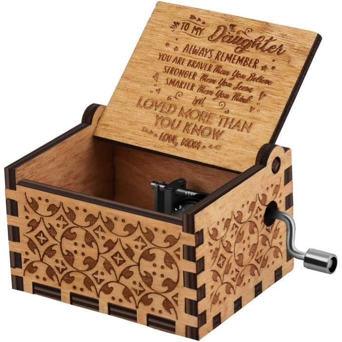 ➤【Peinture exquise sculptée et colorée】- La surface de la boîte à musique à manivelle est gravée avec un motif gravé vintage, et l'intérieur est peint avec des éléments de Noël exquis et des petits nains mignons qui donnent une surprise d'ouverture. Design vintage en bois : les parties intérieures de la boîte à musique vintage sont fabriquées en bois de haute qualité et avec un mouvement précis en métal, faible bruit, accord clair et précis, poignée lisse, facile à secouer, ne se démodera pas après une longue utilisation Bienvenue dans notre magasin, nous avons lancé aujourd'hui une nouvelle boîte à musique gravée faite de bois de haute qualité et d'un motif gravé exquis, transmettant l'atmosphère joyeuse de Noël n'importe où. Passez l'atmosphère joyeuse de Noël de l'intérieur. Cette boîte à musique de Noël est également un excellent sujet de conversation. Non seulement comme cadeau musical, mais aussi comme décoration souvenir de vacances. Caractéristiques: Matière : Bois et Métal Forme : Carré Numéro de tonalité de mouvement : 18 tonalités Surface : gravée Processus : Main pure Musique : Joyeux Noël Taille : 2,5 x2 x1,6 pouces La couleur noire La taille est minuscule d'environ 6,3 x 5,1 x 4,1 cm, ce qui est parfait pour tenir dans la main, la conception portable et légère peut le placer partout. Boîte à musique de chariot de renne de Noël en bois - DILWE - Joyeux Cette boîte à musique joue la chanson de 18 notes uniquement lorsque vous tournez la poignée, jouez la chanson Merry Christmas Songs à un rythme régulier mais lent dure environ 30 secondes, puis vous pouvez la répéter, ce qui peut apporter la meilleure bénédiction de Noël. Cadeau parfait pour les enfants, les amoureux et les amis à Noël et au Nouvel An. ➤【Boîte à musique unique】- Pas besoin de piles. Peinture exquise sculptée et colorée - La surface de la boîte à musique à manivelle à main est gravée d’un motif gravé vintage, et l’intérieur est peint avec des éléments de Noël exquis et quelques petits gnomes mignons qui donnent une surprise d’ouverture Boite A Musique Bebe Boîte Musique Nightmare Before Christmas Boîte à Musique Vintage The Nightmare Before Christmas - Gravure Laser Bois Funko Pop Nightmare Before Christmas Boite à Musique Noel Magnifiquement sculptée, douce mélodie, un beau cadeau pour papa, maman, épouse, fille et fils.