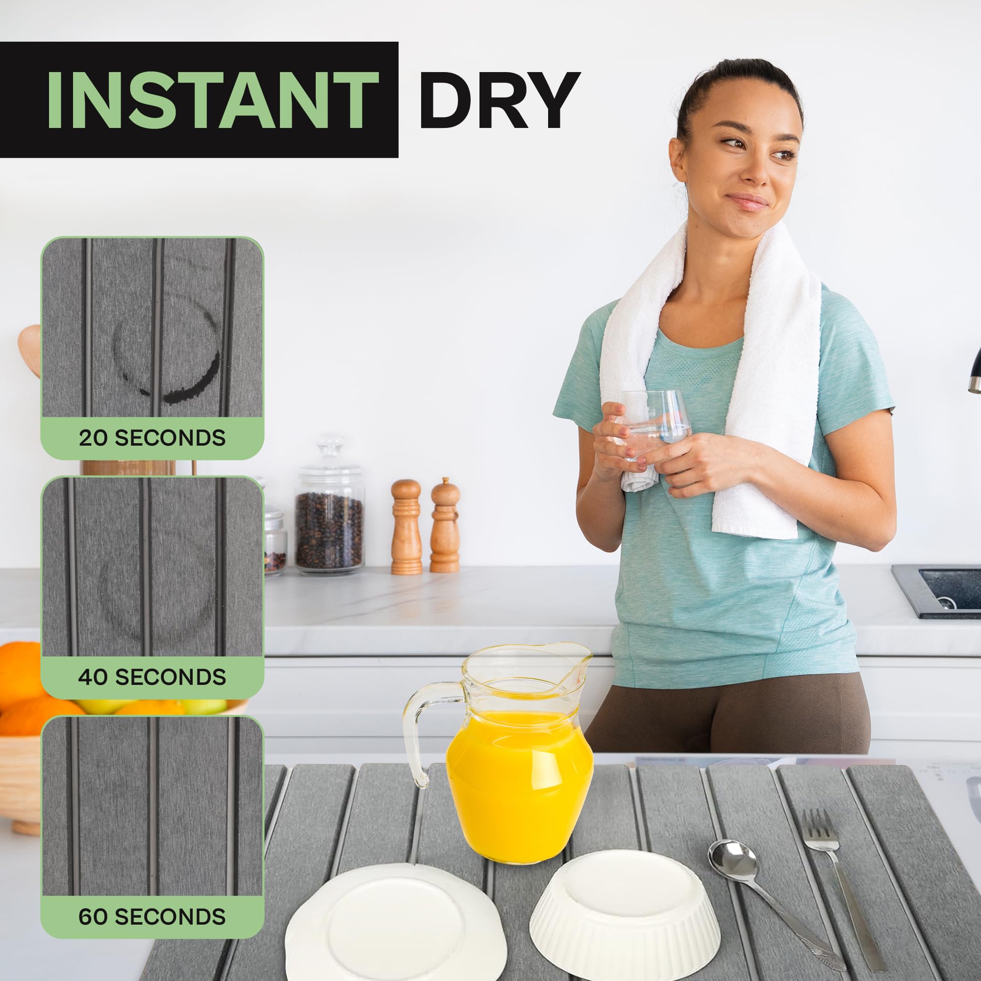 Caractéristiques : 1 : Mettez à jour votre expérience de cuisine avec notre tapis de séchage en pierre, conçu pour garder vos comptoirs propres et secs. TAPIS SÉCHAGE 40 X 47 CM USTENSILES 2 : mesurant 40 x 30 cm, ce tapis absorbant multifonction se démarque rapidement après avoir lavé la vaisselle, les fruits ou les légumes. Remarque : Mesure manuelle, veuillez permettre de légères erreurs de taille. Utilisation polyvalente : mesure de 40 x 30 cm, ce tapis multifonctionnel est parfait pour diverses tâches de cuisine, qu'il s'agisse de plats de séchage, de fruits ou de légumes, ce qui en fait un outil essentiel pour toute maison. Tapis De Bain Diatomite SOQKEEN Tapis Egouttoir Vaisselle, 40×30 Cm Tapis Vaisselle Egouttoir Absorbant, Tapis égouttoir Vaisselle Antidérapant, Tapis Absorbant Pour évier De Cuisine Porte-vaisselle Plan De Travail En Marbre Tapis Diatomite 3 : sa surface antidérapante assure la stabilité et la sécurité, évitant les glissades et les déversements pendant que vous travaillez dans la cuisine. Absorption supérieure : le tapis de séchage en pierre dispose d'une technologie absorbante avancée qui absorbe rapidement l'excès d'eau et l'humidité, gardant les comptoirs de cuisine secs et sans désordre après avoir lavé la vaisselle ou produit. Pliable et peu encombrant : son design pliable permet un rangement facile lorsqu'il n'est pas utilisé, ce qui en fait une excellente solution d'économie d'espace pour les cuisines, les plans de travail ou les configurations de camping. Matériau : terre de diatomée. Tapis de séchage de vaisselle en silicone, égouttoir de tapis d'évier Contenu de la livraison : 1 x cuisinière de séchage des pierres. Utilisation polyvalente : mesure de 40 x 30 cm, ce tapis multifonctionnel est parfait pour diverses tâches de cuisine, qu'il s'agisse de plats de séchage, de fruits ou de légumes, ce qui en fait un outil essentiel pour toute maison