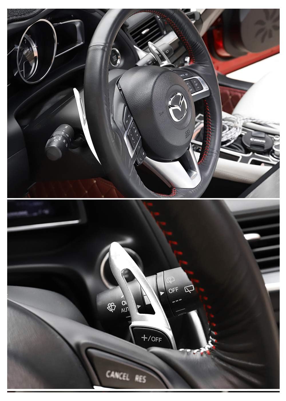 Type : Shift Paddle Shifter Extension Compatibilité : (uniquement compatible avec les modèles avec levier de roue Steering d'origine)., Pour 3 à partir de 2014., Pour 6 à partir de 2014., Pour CX-3 à partir de 2016., Pour CX-5 à partir de 2012., Pour CX-4 à partir de 2016., Pour CX-9 à partir de 2017., Pour MX-5 à partir de 2016., Pour Atenza 2014-2018., Pour Axela 2014-2018., (même d'autres véhicules VAG avec palettes de changement de vitesse identiques). Palettes de changement de vitesse (gauche et droite) fraisées CNC en aluminium anodisé noir. HIBEYO Lot de 2 palettes de Changement de Vitesse pour 3 6 Axela Atenza CX3 CX5 MX5 CX9 Extension Shift Paddle Volant de Course Route Volant Pédalier Auto Extension Aluminium Noir Nos palettes au volant offrent une solution pratique et esthétique pour le changement de vitesses, vous permettant de garder les mains sur le volant et de... Veuillez vérifier le modèle de votre véhicule avant de commander afin de vous assurer que l'article correspond parfaitement. BL10348 B red Porte couvercle de clé de voiture en Fiber de carbone Contenu : 2 palettes de changement de volant (gauche + droite). 2 rubans adhésifs double face., Remarque : 1., Veuillez vérifier le modèle de votre véhicule avant de commander afin de vous assurer que l'article correspond parfaitement., 2., Il est facile à installer, mais une installation professionnelle est toujours recommandée. Paddles Rouges Sportifs Compatibles 2014 HIBEYO Extension De Volant En Aluminium CNC Noir Compatible Avec Mazda 3 6 Axela Atenza CX9 CX3 CX5 MX5 Mazda 3 6 Axela Atenza CX9 CX3 CX5 MX5 Mazda 3 Extensions De Paddle Shifters Mazda Matériau : alliage d'aluminium. Si vous avez des questions, n'hésitez pas à nous contacter et nous vous fournirons la solution la plus satisfaisante. Extension de palettes de changement de volant - En alliage d'aluminium - Pour décoration de voiture.