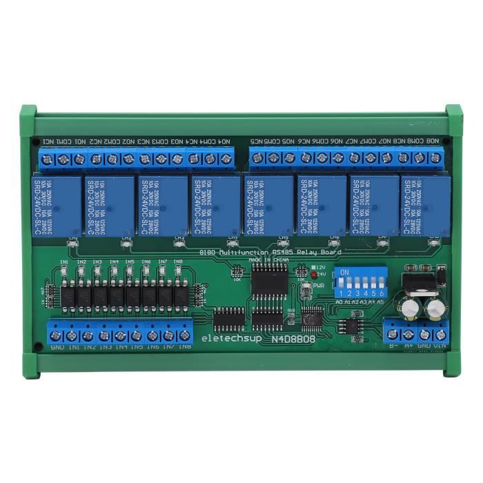 Compact et portable : de petite taille, cet appareil est incroyablement facile à transporter et à ranger ; Son design compact ne fait aucun compromis sur les performances, offrant un équilibre entre portabilité et fonctionnalité Carte d'extension 8 entrées 8 sorties pour système ela+ | CS Sécurité Automate FX3U 24Vcc 8 entrées 8 sorties Relais Compatibilité des appareils : prenant en jusqu'à 64 appareils en parallèle, cet appareil garantit une intégration transparente dans des systèmes plus grands ; Avec la possibilité de saisir des commandes via le super terminal du port série Configuration du débit en bauds : cet appareil est livré avec un débit en bauds par défaut de 9 600 BPS, mais vous pouvez facilement sélectionner des débits en bauds alternatifs tels que 2 400, 4 800 ou 19 200 BPS à l'aide du cavalier. Module 8 sorties relais, 2 A Modes de fonctionnement polyvalents : doté de six modes de fonctionnement distincts : ouverture, fermeture, jogging, auto-verrouillage, verrouillage et délai, ce produit offre un contrôle flexible pour différents processus ; Que vous ayez besoin d'un timing précis, d'actions séquentielles ou de fonctions de sécurité Liste des paquets :1 x relais de boîte à railRemarque :Veuillez noter que le nouveau type et l'ancien type de ce produit seront envoyé au hasard, et assurez-vous que cela ne vous dérange pas avant de commander. Relais Programmable Modes Fonctionnement Module De Relais RS485 8 Entrées 8 Sorties Boîte De Rail DIN35 Module Relais Rail DIN