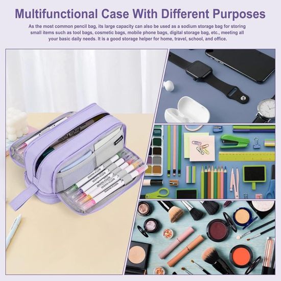 Soin du détail : Son design minimaliste et sa fermeture éclair élégante rendent cette trousse à la fois pratique et esthétique. 4 compartiments, grande capacité : Le grand compartiment central offre suffisamment d'espace pour 30 à 40 crayons et autres fournitures. · Robuste et légère Grande capacité avec 4 compartiments pour un rangement organisé Pratique et polyvalente, elle s'adapte à de nombreuses occasions. Multifonction : Cette trousse spacieuse peut également servir de sac de rangement, de trousse de loisirs créatifs ou de trousse de maquillage, idéale pour les voyages, le bureau ou le quotidien. Elle peut accueillir plusieurs stylos, une règle de 20 cm, un petit carnet, des post-its et une calculatrice. Cette trousse scolaire est idéale pour les élèves, les enseignants et tous ceux qui ont besoin de transporter beaucoup de matériel d'écriture. Grande Capacité 2 Compartiments Trousse Scolaire, Store Portable Étui à... Conception ergonomique avec poignées pratiques et fermeture éclair Trousse à Crayons Grande Capacité à 4 Compartiments Avec Fermeture Eclair Poignee Portable Trousse A Crayons Sac De Rangement Pour Papeterie 99175226 Trousse 4 Compartiments Trousse Scolaire Trousse à Crayons Grande Capacité,20.9x10cm,Trousse à Trousse école Bureau Voyage Les poignées latérales pratiques assurent une prise en main confortable et un transport facile, que ce soit à l'école, au bureau ou en déplacement. Utilisation polyvalente : école, bureau, voyages, etc. 4 compartiments, grande capacité : Le grand compartiment central offre suffisamment d'espace pour 30 à 40 crayons et autres fournitures. Résistante aux déchirures et aux rayures, elle est facile à nettoyer. Grâce à sa légèreté, elle ne s'encombrera pas et ne se déchirera pas, même avec des crayons.