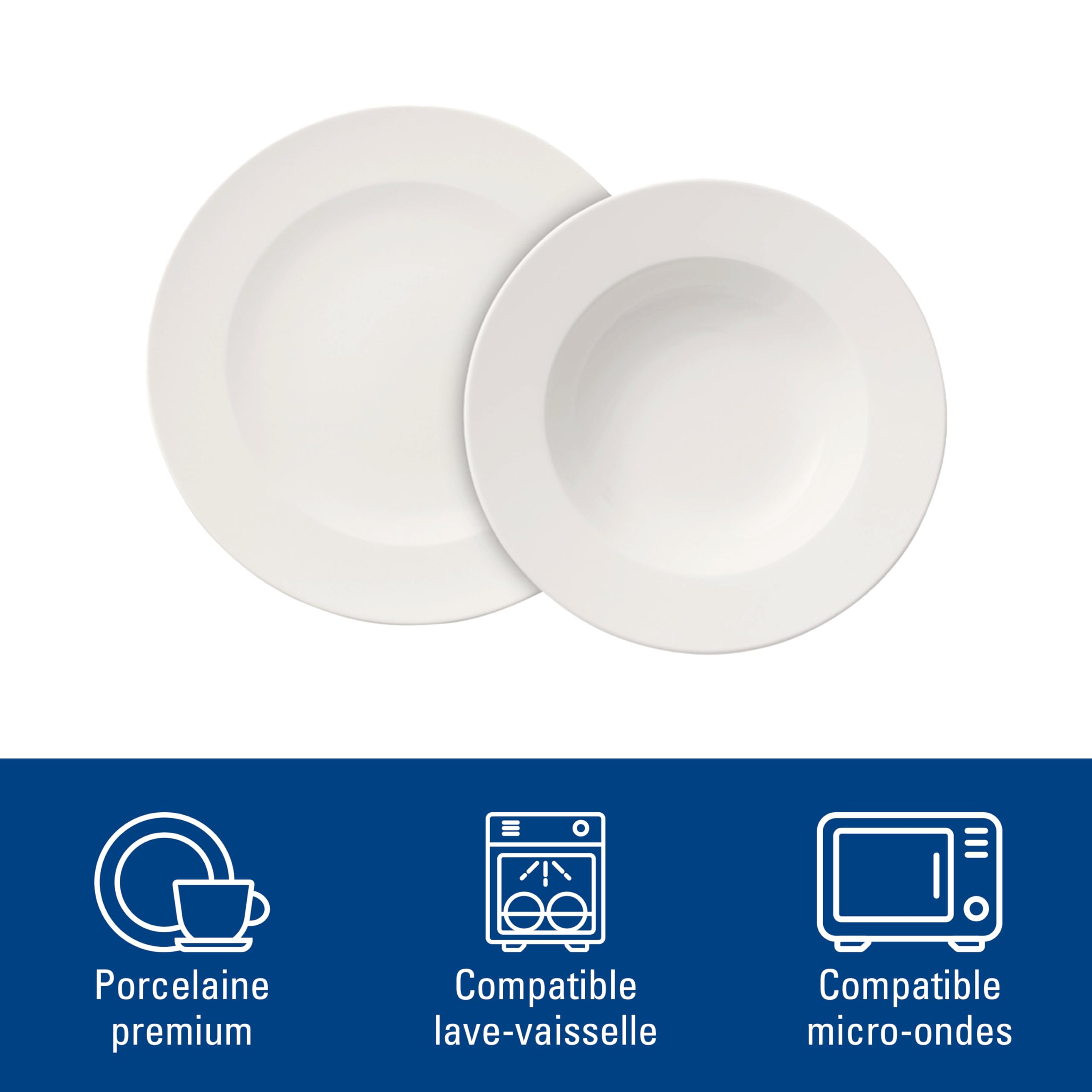Passe au lave-vaisselle, au micro-ondes et au four jusqu'à 200 °C, qualité supérieure : porcelaine de qualité supérieure fabriquée en Allemagne Assiette creuse for me Couleur blanc Villeroy & Boch | La Redoute Lot de 6 assiettes creuses porcelaine Villeroy et Boch, le fond est de couleur beige /ivoire avec liseré doré sur le bord et un filet doré. En parfait état. 12 assiettes disponibles au total, vendues par lot de 6 6 (une des assiettes a une tache marron Assiette à soupe classique en porcelaine comme compagnon idéal au quotidien ou sur la table de fête Étant donné que l'assiette peut être portée d'une main, empilée pour gagner de la place et peut être lavée au lave-vaisselle, elle convient également pour une utilisation dans la restauration. Aujourd'hui ce produit est vendu au prix de 18,30 € chez villeroy-&-boch. C'est la boutique la moins chère qui livre en France d'après notre comparateur de... Profondeur optimale pour les soupes et les ragoûts avec inserts, large bord permet de servir sans gouttes, design simple s'adapte à toutes les collections Grâce à la forme profonde et au large bord de l'assiette, les soupes sont servies sans goutte. Assiettes à Soupe 25cm Blanc Assiette Creuse Porcelaine Service - Lot De 6 Colorées - Assiette Villeroy Et Boch Vaisselle