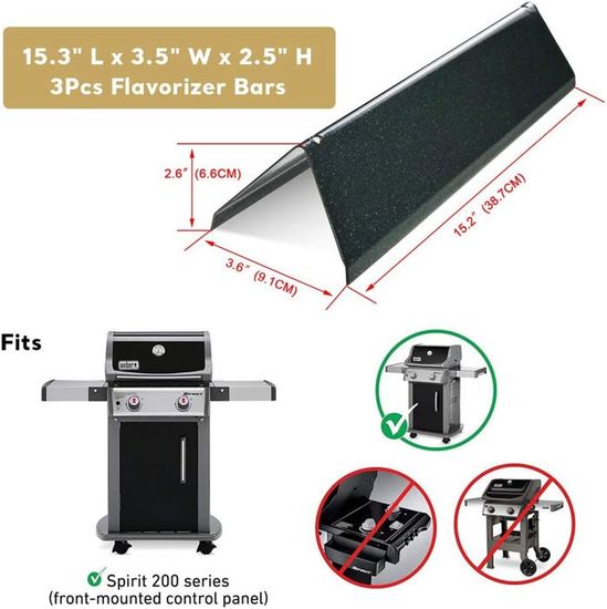 FORYEYC 38,9CM Porzellanemaille flavorizer Bars für Weber Spirit e210 Weber Spirit E210 7635 38,8CM Flavorizer Bars Pour Weber Spirit I&II 200 ,Spirit E210/220 S210/220 Grils(avec Boutons De Commande à L'avant), Rails D'arôme En Porcelaine émaillée,bouclier Thermique Couvercle De Brûleur Pièces Weber Si vous avez n'importe quel problème, svp tombés libres pour nous contacter. Fonctionnalités : Le rail d'arômes Weber 7635 aide les brûleurs à répartir la chaleur uniformément et à rendre les aliments plus savoureux, protège vos brûleurs de barbecue contre les gouttes de graisse 【Remarque】Ne convient pas au barbecue avec panneau de commande latéral. Achetez 7635 38,8CM Flavorizer Bars pour Weber Spirit I&II 200 ,Spirit E210/220 S210/220 Grils (avec boutons de commande à l'avant), rails d'arôme en porcelaine émaillée,bouclier thermique couvercle de brûleur Veuillez vérifier le numéro de modèle du barbecue avant l'achat afin d'acheter les bonnes pièces détachées. GFTIME 38,9CM Barres Flavorizer 7635 pour Weber Spirit E210 S210 E220 S220 (avec Bouton Avant), Pièce de Rechange de Plaque Chauffante Acier Inoxydable pour Weber Spirit I & II 200 【Qualité supérieure】Les Flavorizer Bars de Weber Spirit 200 Series sont fabriqués en acier émaillé porcelaine durable, chauffent rapidement, sont résistants à la rouille, robustes et durables, beaucoup plus longtemps que d'autres articles similaires, le choix idéal pour votre barbecue qui offre une excellente performance de cuisson. 【Parfaitement adapté】Flavorizer Bars pour Weber Spirit I&II 200 Series Grill, Weber Spirit E210, E220, S210, S220(2013-2017),Weber Spirit II E-210 & S-210 avec boutons de commande avant., 【Compatible également】Weber 46010074, 46100001, 46110001, 46113101, 47100001 46510001 46010674., Compatible avec le numéro de pièce d'origine Weber : Weber 7635., 【Dimensions】38,8CM (L) x 8,9CM (l) x 6,8CM (H)【Paquet】3 bâtonnets d'arôme de flocon de neige de haute qualité en acier émaillé.