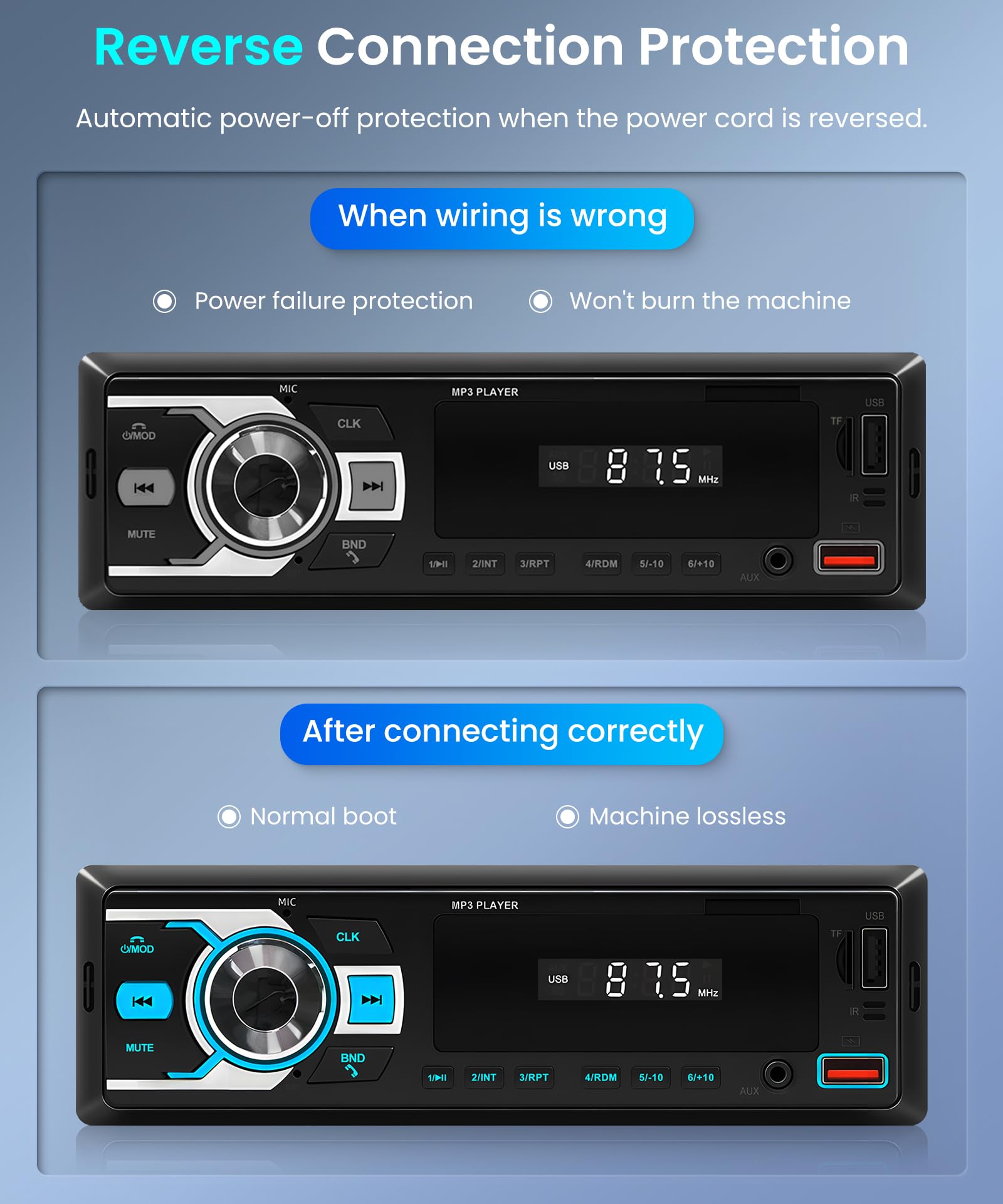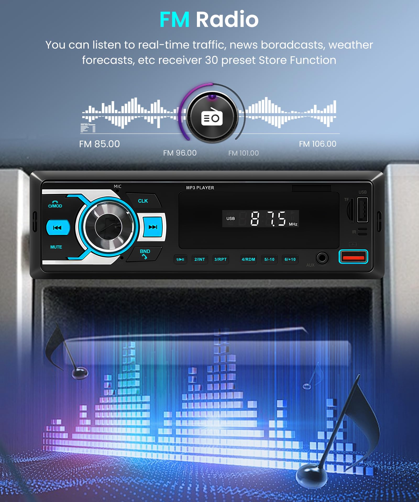 🚗【Affichage de l'heure】Autoradio avec grande horloge numérique pour une indication précise de l'heure. Reproductor MP3 de 1 Din para coche, autorradio estéreo con dvd, FM, Aux, recept La autoradio prend en charge USB/TF/AUX in/Type C. Le bouton de l'autoradio a également sept couleurs de lumière, vous pouvez choisir votre couleur préférée La fonction Bluetooth vous permet de connecter sans fil votre téléphone portable ou d'autres appareils Bluetooth pour passer des appels et écouter de la musique. Vous pouvez adapter les paramètres audio à votre style de musique et profiter de la meilleure qualité sonore, même en déplacement ! Elle facilite la connexion, réduit l'enchevêtrement des câbles et améliore la sécurité au volant. 🚗【Wireless Bluetooth Radio 1 Din】L'autoradio dispose de la technologie Bluetooth intégrée. Si vous avez des questions,nous serons heureux de vous aider. Particularités Tension:DC 12V Type d'écran:TFT Couleur RGB:Sept couleurs Prise en charge de la fonction tactile de l'écran:. Commande Au Volant Voiture Autoradio 1 Din Bluetooth Mp3 Player Avec 2.17"Tft Écran Autoradio Bluetooth écran 2.17 Pouces Supporte IOS et Android Phone. Autoradio avec écran de cadran TFT de 2,17 pouces, écran de conception de cadran est élégant et généreux, par rapport au lecteur MP3 ordinaire, vous pouvez voir l'heure à travers l'écran, régler l'EQ et ainsi de suite, de sorte que votre conduite est plus pratique Fréquence radio : 87,5 MHz -105 MHz, claire et silencieuse pour une meilleure expérience d'écoute. Nous prenons soin de nos précieux acheteurs. Radio dispose de trois cadrans différents et de cinq interfaces utilisateur thématiques parmi lesquelles vous pouvez choisir. Cet autoradio prend en charge les cartes MP3/WMA/WAV/TF. Planification efficace du voyage, pas besoin de vérifier votre téléphone portable - une expérience de conduite plus sûre et plus confortable ! 🚗【Commande au Volant】L'autoradio prend en charge la commande au volant (télécommande au volant incluse), ce qui vous permet de régler facilement le volume, de changer de piste et de répondre aux appels sans retirer vos mains du volant. 🚗【 EQ Fonction】L'égaliseur intégré offre une variété de modes sonores, tels que le caisson de basses, le son surround 3D et l'amélioration des voix. Autoradio avec écran de cadran TFT de 2,17 pouces, écran de conception de cadran est élégant et généreux, par rapport au lecteur MP3 ordinaire, vous pouvez voir l'heure à travers l'écran, régler l'EQ et ainsi de suite, de sorte que votre conduite est plus pratique.
