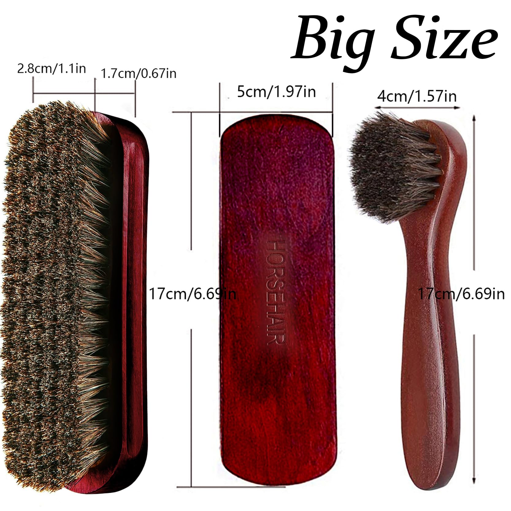 Lot de 2 brosses à chaussures en crin de cheval pour cirage de chaussures + 1 gant en tissu brillant pour bottes, chaussures, sièges de voiture, canapés, sacs Brosse Cirage Chaussures Manche Long Generic Brosses à Chaussures Crin De Cheval, Brosse Chaussure Nettoyage Multifonctionnel, Brosse De Cirage Pour Chaussure à Prix Pas Cher | Maroc Brosse Chaussures Crin Cheval Permet une application facile du cirage sur les plis et les plis de la chaussure, des crevasses faciles à nettoyer et des bords et des enduits. Ceci est un excellent outil de nettoyage de chaussures, une brosse à chaussures en crin de cheval à double face, des crins de cheval sélectionnés, aucun dommage aux chaussures en cuir et aucune perte de cheveux. Matériau en crin de cheval : la brosse à chaussures est fabriquée en crin de cheval sélectionné, sans endommager les chaussures en cuir, et sans perte de cheveux, nettoyer et faire briller vos chaussures, pourrait répondre à vos besoins quotidiens pour une performance incroyable. Brosse À Chaussures - Brosse À Cirer Les Chaussures avec Poignée Confortable - Brosses Multifonctionnel en CRIN De Cheval Doux pour Le Nettoyage des Sacs À Main, Bagages, Bottes, Gants, Manteau Conception à long manche: La conception à long manche est facile à saisir et vos mains et vos ongles propres lorsque vous vous brossez les chaussures, et la conception à double face convient à l'application complète de cirage ou de cire à chaussures. Description du produit Améliorez votre routine d'entretien des chaussures avec notre brosse de nettoyage efficace. Les poils densifiés rendent les tâches sans effort pour une vie pratique à la maison. Profitez d'une solution peu encombrante avec une utilisation économique. Caractéristiques : Nom du produit : brosse à chaussures. Dimensions du produit Facile à utiliser : la brosse en crin de cheval à long manche offre une bonne prise en main qui rend l'utilisation de la brosse à chaussures facile, efficace et confortable. Il est idéal pour nettoyer les articles en cuir et en n-u-b-u-c-k tels que les chaussures, les bottes, les sacs à main, etc., Nom : brosse à chaussures.