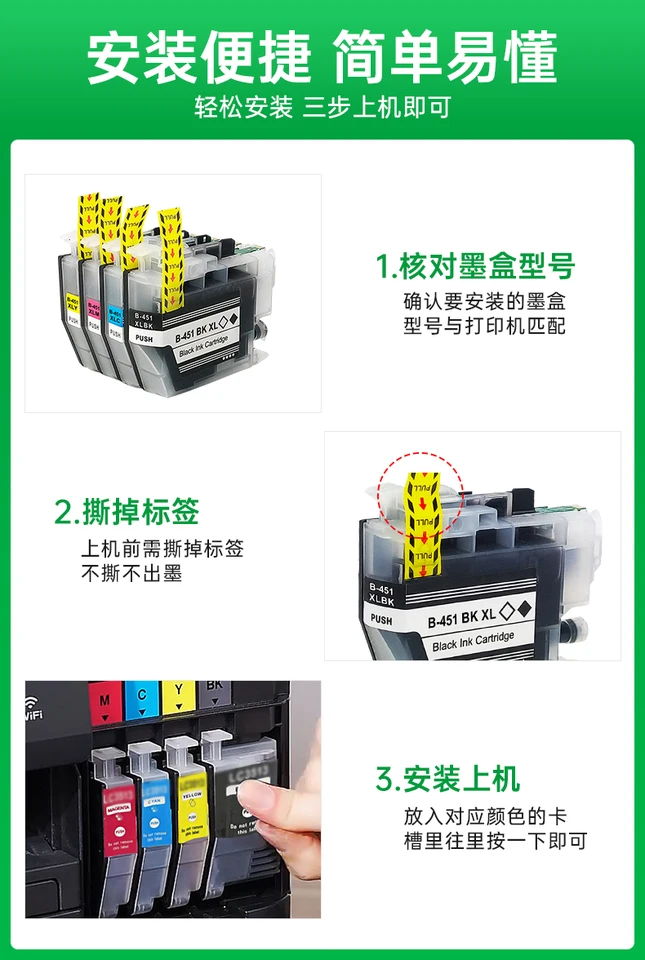 Si des problèmes de reconnaissance surviennent, ils peuvent être facilement résolus en branchant et en débranchant la cartouche plusieurs fois, pour une expérience d'impression fluide et sans souci. Cartouches d'encre Improducts® - Cartouches d'encre Alternatief Brother LC-424XL LC Cartouche verte s'engage et vous propose des cartouches d'encre compatibles* avec BROTHER LC424 équipées d'une puce intelligente pour vous garantir une compatibilité parfaite avec votre imprimante tout en vous permettant de suivre votre consommation avec précision grâce aux niveaux d'encre Profitez de performances d'impression durables sans changer fréquemment d'encre. Rendement de page élevé : chaque cartouche noire LC 424 imprime environ 750 pages, les cartouches cyan, magenta et jaune impriment environ 750 pages (sur du papier A4 à 5 % de couverture). LC424 B Cartouche d'encre générique pour Brother - Noir Facile à installer : nos cartouches LC424 avec la dernière technologie de puce sont immédiatement reconnues par votre imprimante après l'installation. Contenu de la livraison : lot de 4 cartouches d'encre LC424, 1 x LC424 noir, 1 x LC 424 cyan, 1 x LC-424VAL magenta, 1 x LC-424 jaune, convient aux cartouches d'encre Brother DCP-J1200W. Imprimante DCP-J1200W LCL Cartouches D'encre Compatibles LC424VAL LC424 LC-424 Lot 4 Couleurs Cyan Magenta Jaune Noir