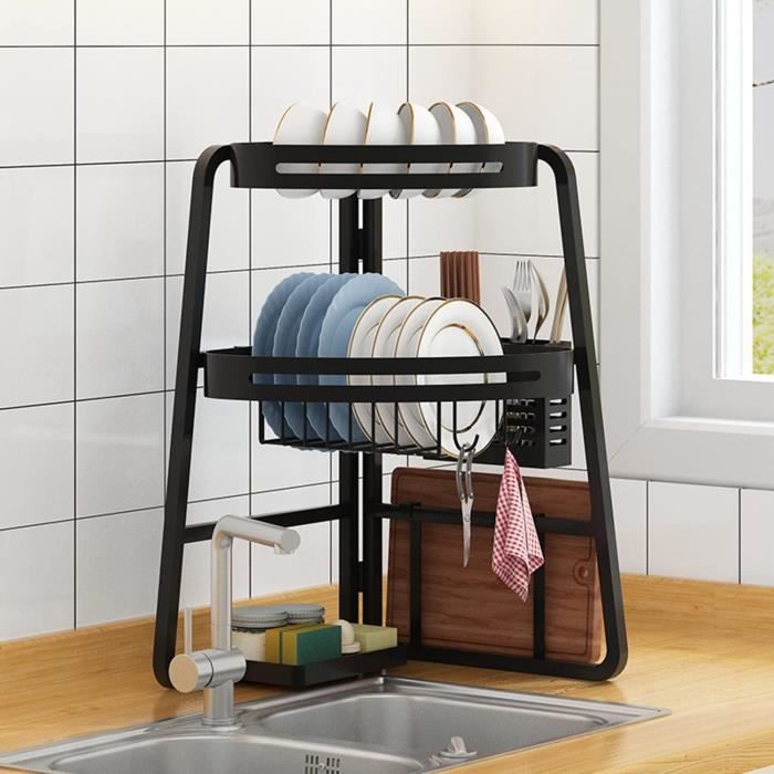 Réappropriez-vous votre comptoir de cuisine avec l'égouttoir à vaisselle à 3 niveaux Mointal. Grâce à sa conception verticale, cet égouttoir à vaisselle à trois niveaux peut offrir une grande capacité de stockage sans prendre trop de place sur votre comptoir de cuisine, ce qui rend votre cuisine plus ordonnée Cet organisateur est intelligemment conçu pour se tenir au-dessus de votre évier ou sur le comptoir, utilisant un système unique sans perçage avec support mural, patins adhésifs et ventouses pour une stabilité exceptionnelle. Il peut contenir facilement plus de 10 assiettes, 12 bols, ainsi que des tasses et des ustensiles. Avec des instructions claires, le montage est rapide. Range-vaisselle Sur évier Sans Perçage Virgorack Grand égouttoir à Vaisselle Mural à 3 Niveaux, En Acier Inoxydable, égouttoir à Vaisselle Pour Cuisine Avec Organiseur D'ustensiles (noir Couteaux Et Ustensiles De Cuisine Un bac d'égouttage coulissant pratique garde votre comptoir au sec. 4 crochets suspendent les ustensiles. Il suffit de le retirer pour vider l'excès d'eau et éviter les taches. Fabriqué en acier au carbone durable avec un revêtement antirouille, il transforme le désordre en ordre. IBVIVIC 2 Niveaux Égouttoir à Vaisselle Réglable sur l'évier, Séchoir à Il s'appuie contre le mur, utilise des patins adhésifs en haut et des ventouses en bas. Avec sa structure à double couche, il permet un rangement efficace des assiettes, cuillères et baguettes, tout en gardant votre plan de travail organisé et sans...