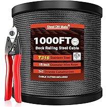 Câble en acier inoxydable 7x19 de 3,0 mm. Bobine de 10 m | Leroy Merlin Câble Suspension Extérieur Steel DN Mate Câble Métallique Noir De 30,5 M T316L En Acier Inoxydable De Qualité Marine, 7 × 7 Brins, Pour Système De Garde-corps, Clôture D'escalier, Terrasse, Garde-corps, Avec Coupe-fil Résistant Rouille Extérieur Remarque : utilisez le câble métallique selon les exigences de charge du design, évitez la surcharge. Taille – Diamètre du fil : 1,2 mm ; longueur du câble : 6 m ; construction : 7 x 7., Matériau : notre câble métallique de qualité marine est fabriqué en acier inoxydable 304 haute résistance, ce qui améliore la résistance à l'usure, à la rouille et à d'autres corrosions, assurant durabilité et durée de vie. Les fils sont très solides et très résistants à l'usure, de sorte qu'ils peuvent être utilisés pendant une longue période sans vous soucier des dommages. Le fil est recouvert de vinyle, résistant à la corrosion et à la rouille, et vous pouvez l'utiliser dans une variété de paramètres, y compris à l'intérieur et à l'extérieur Application : notre kit de câble métallique est adapté pour une utilisation en intérieur et en extérieur. sourcing ap 6 Filetage 45 Longueur 304 Inoxydable Acier Carré U... La résistance supérieure permet de multiples utilisations telles que le jardin, les vêtements gonflables, les haubans, les laisses d'animaux, les lignes d'attache, la suspension de photos, les balustrades, les terrasses, les balustrades de bricolage, le matériel de bateau marin et plus encore. Caractéristiques : le câble métallique est tressé dans une structure de 17,8 x 17,8 cm avec 7 groupes de 7 brins.
