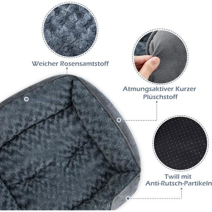 Surface confortable : la surface de couchage du canapé-lit pour chien est fabriquée en velours qui donne à votre chien beaucoup d'espace pour s'étendre et dormir confortablement. Taille : 50 x 40 x 12 cm - Pour chats et chiens jusqu'à 3 kg. Donnez à vos chiens beaucoup d'espace pour s'étendre, encourageant une meilleure relaxation et un sommeil réparateur., 2., Confortable. Mais afin de maintenir la qualité du sommeil du chien, veuillez sécher à basse température et ne pas sécher à l'air libre. Favorise un meilleur sommeil et un confort complet dans toutes les positions. Matelas Pour Chien Canapé-lit Orthopédique Pour Chien – Lit Ultra Confortable Pour Chiens De Taille Moyenne – Lit Respirant Et Imperméable En Mousse D'œuf Avec Soutien Supplémentaire De La Tête Et Du Cou – Housse Coussin Chien Confortable Soutien orthopédique : fabriqué en coton PP, ce lit orthopédique moyen pour chien offre une répartition uniforme du poids. Facile à nettoyer : les lits et tapis pour chien peuvent être séparés. Veuillez vous référer au produit réel pour plus de détails. Confort et sécurité : les quatre parois surélevées et le lit rectangulaire pour chien offrent un bon soutien et un bon coussin pour la tête et le cou du chien, ce qui est excellent pour les chiens qui aiment reposer leur tête sur le côté du lit. Tout comme nous, les chiens sont sujets à des maladies articulaires et ont parfois du mal à trouver le sommeil. Il leur faut un lit confortable qui épouse parfaitement leur morphologie et soutient tout leur poids. Ce sont les avantages du matériau utilisé pour le rembourrage du couchage. Trouvez... Description du produit Matériau : velours + coton PP. Contenu de l'emballage : 1 lit pour chien Mode d'emploi Non Il est doux et chaud pendant l'hiver et conserve efficacement la chaleur corporelle de votre animal de compagnie. Les lits et tapis pour chien peuvent être séparés, de sorte que vous pouvez facilement les garder propres. Grand matelas pour chien avec housse amovible et lavable, orthopédique, en mousse à mémoire de forme, imperméable, antidérapant, fond anti-morsure, rectangulaire, portable, 100 x 75 x 10 cm Coussin Chien Orthopédique Déhoussable, Lit pour Chien Moyenne Taille La texture réconfortante aide à calmer les animaux anxieux, encourageant une meilleure relaxation et un sommeil réparateur.