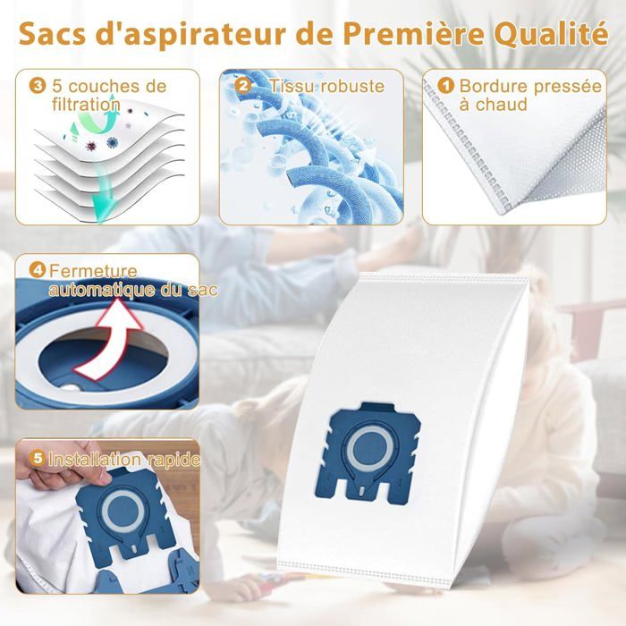Compatibilité universelle : ces sacs d'aspirateur sont parfaitement compatibles avec Miele Classic C1, Complete C2/C3, et S2000, S5000, S8000, S227, S240, S 6999, S 6, S 4000 - S 4999, S8000 S6000., et série GN 3D EN STOCK : Lot de 12 Sacs à Poussière Pure GN 3D Compatibles avec Miele GN pour Aspirateurs Classic C1 Complete C2 Complete C3, S2 S4 S5 S6 S8 Series avec 4 4 Filtres Air Clean, GYQCJ-4762 pas cher. Livraison rapide partout en France Ce lot contient 12 sacs d'aspirateur et 2 kits de micro-filtres. Grande capacité : les sacs offrent une grande capacité de collecte, ce qui vous permet d'aspirer de plus grandes quantités de saleté et de débris avant de devoir les remplacer, ce qui rend le nettoyage plus efficace Facile à installer : le design intuitif des sacs rend l'installation facile et rapide, de sorte que vous pouvez facilement les remplacer et toujours obtenir la puissance maximale de votre aspirateur Matériau durable : fabriqués à partir de matériaux de haute qualité, ces sacs offrent une durée de vie et une résistance à l'usure plus longues, empêchent les fissures ou la perte de poussière pendant l'utilisation Filtration hygiénique et air pur : La construction en microfibre multicouche filtre même les plus fines particules de poussière, le pollen et les allergènes. Aspirateur Sac Lot De 12 Sacs U00e0 Poussiu00e8re 3D, Compatibles Durable et respectueux de l'environnement : Les sacs robustes offrent une grande capacité et sont résistants à la déchirure. Solution complète idéale pour un air pur et prolonger la durée de vie de votre aspirateur. Facile à utiliser et sûr : Les sacs s'insèrent rapidement et proprement. Lot économique ◁ Vous recevrez 12 sacs d'aspirateur GN, 4 filtres de protection du moteur et 4 filtres d'échappement Airclean et notre service client... Sac Aspirateur Miele Compact C1 12 Sacs Aspirateur GN Compatibles Avec Miele Hyclean Pure 3D Sacs Pour Filtre Aspirateur Miele Série S Idéal pour les personnes allergiques et les propriétaires d'animaux domestiques.