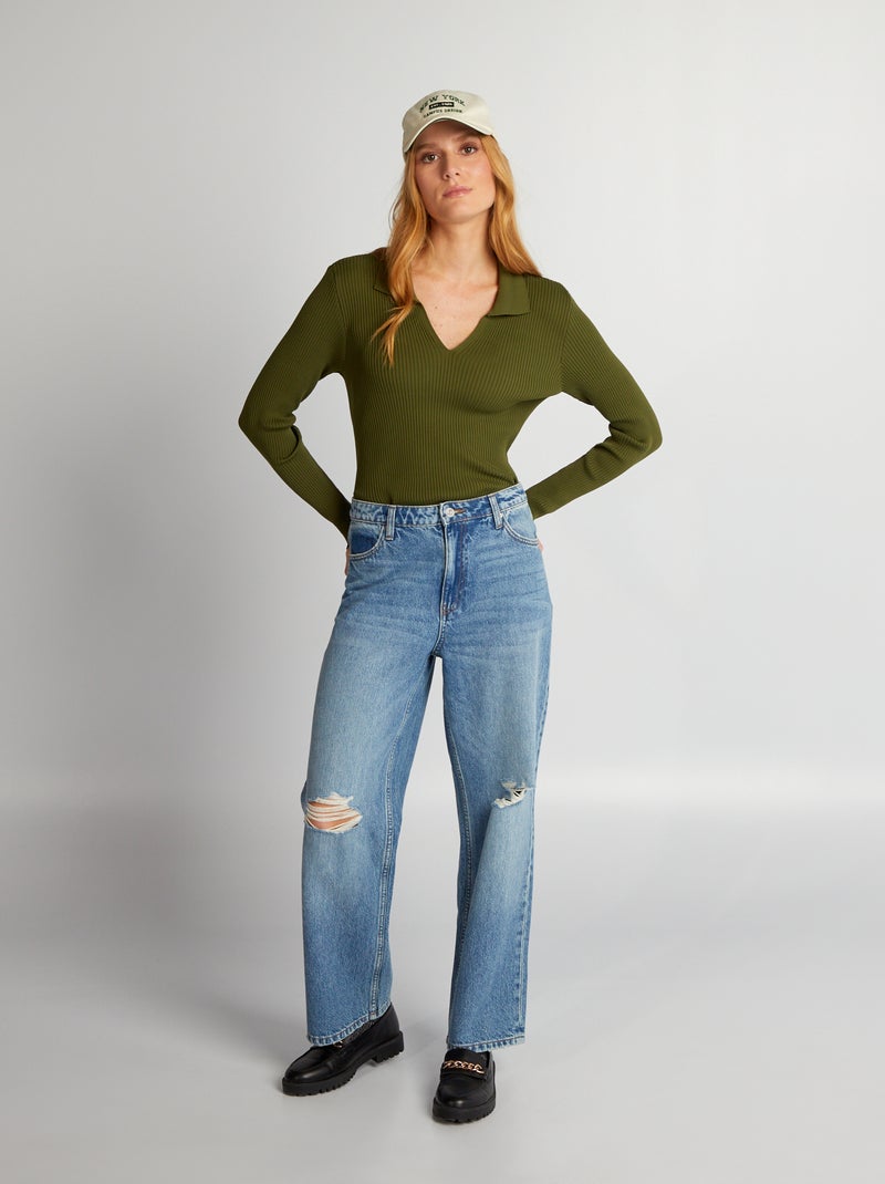 Pull à Manches Longues avec Boutons et Col V | RW&CO Pull Col V Femme Shein Pull à Col Roulé Côtelé Pour Femmes Manches Longues Tricoté Uni Pull Doux Femme Pull côtelé à col V - blanc - Kiabi - 18.00 Ce **pull à manches boutonnées en tricot côtelé** est disponible en **S, M, L et XL**, conçu pour offrir une coupe ajustée mais confortable. Si vous préférez une **coupe plus ample**, nous vous recommandons de **prendre une taille supérieure** pour plus de confort