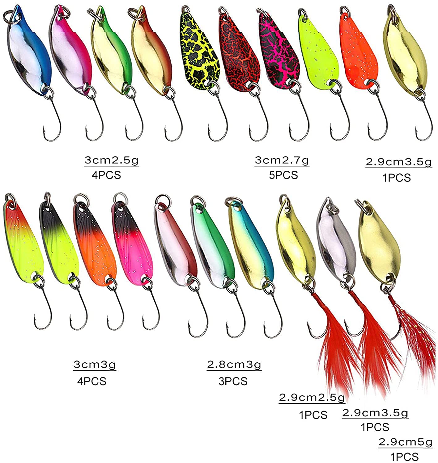 Ce kit de leurres est livré avec différents types de leurres qui s'adaptent à différentes conditions, ciblent les espèces les plus populaires. Tels que la truite, le crapet, l'achigan à petite bouche, le brochet, le bar blanc, le vivaneau, le maquereau, le doré jaune et le brochet 🎣【Matériaux de Haute Qualité】Nos leurres métalliques sont fabriqués en métal de haute qualité, chaque leurre est livré avec des anneaux solides et des hameçons pointus. Leurre Métal Truite Mavicen 20 Pièces Fishing Kit Leurres à Truites De Pêche, Leurres Leurres De Pêche Métalliques Description Du Produit: 🪝A l'arrivée, vous recevrez 30 pièces de leurres métalliques et 1 boîte de rangement, le poids d'un leurre est de 2-3,5 grammes. Les leurres sont légers, ce qui peut réduire le poids lors de la pêche et améliorer l'efficacité de la pêche. 🎣【Emballage Portable】Les leurres métalliques sont livrés avec une boîte de stockage portable qui peut contenir 30 leurres métalliques, faciles à stocker et à transporter. Avec différents types de leurres et une boîte de rangement pratique, vous êtes bien équipé pour pêcher dans divers endroits et sous différentes conditions Kit de leurres de pêche pour truite – 30 pièces/boîte de Spécifications Du Produit: Matériau: Métal Couleur: Comme le Montre l'image Taille: Comme le Montre l'image Quantité: 30 Pièces Forfait Inclus: 30 * Leurres de Pêche en Métal 1 * Boîte de Rangement Remarque: 1., En raison de la différence de lumière et d'écran, la couleur de l'article peut être légèrement différente de celle de l'image., 2., Veuillez permettre une différence de 0,5 à 2 cm en raison de la mesure manuelle., 3., Si vous avez des questions ou recevez des questions, veuillez nous contacter à temps. 🎣【Design Réaliste】Chacun de nos leurres métalliques est de couleur vive pour vous aider à attirer plus de poissons. 🪝C'est un excellent choix d'offrir notre leurre en métal comme cadeau à quelqu'un qui aime la pêche.