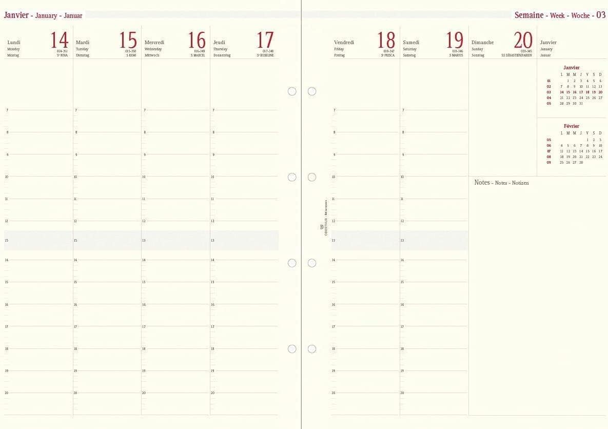 OBERTHUR - Recharge Pour Organiseur 17 Seainier à La Verticale - Janvier 2023 à Décebre 2023