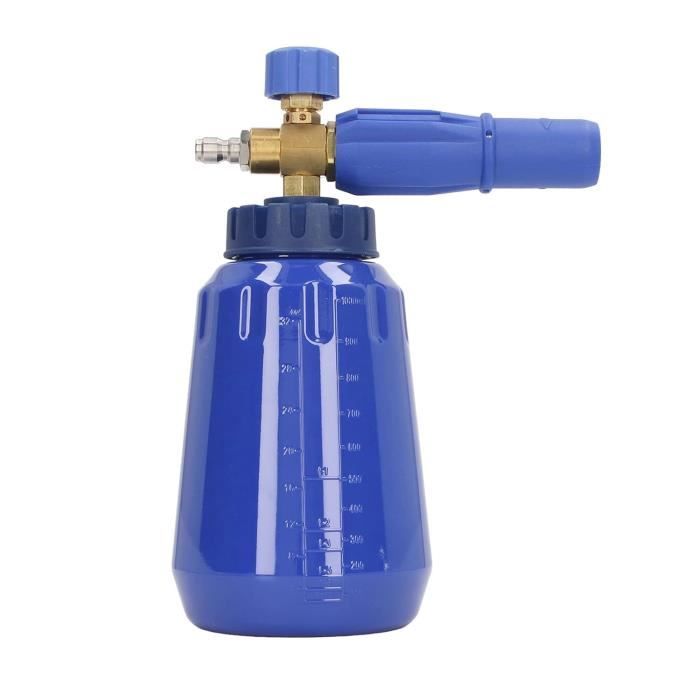 Canon à Mousse Stone Banks Lance à Mousse De Neige, 1L 1/4" à Libération Rapide Pour Nettoyeur Haute Pression, Réglable Buse De Distributeur De Savon Bouteille De Lance En Mousse Lavage De Lance Mousse Réglable épaisseur Il est livré avec une buse en laiton supplémentaire de 1,10 mm pour générer une mousse abondante sur des nettoyeurs haute pression électriques de 800 à 1850 psi. 26451020 Raccord réparateur laiton nettoyeur haute pression Pour utiliser le canon à mousse, remplissez le réservoir avec un nettoyant adapté, réglez la molette de densité selon vos besoins et activez le nettoyeur haute pression pour pulvériser la mousse sur la surface souhaitée Plusieurs modes de pulvérisation : tournez le bouton supérieur à droite pour obtenir le mélange le plus épais ; réglez la poignée du pulvérisateur de mousse de lavage de voiture pour obtenir un bon motif de saupoudrage. Si vous avez un nettoyeur haute pression domestique, pour créer une mousse épaisse, veuillez démonter la buse de 1,25 mm du canon à mousse avec un tournevis plat, et assembler le 1,10 mm à votre canon à mousse. Lance de pulvérisation de neige de savon de buse de mousse-lavage de voiture efficace Compatibilité parfaite avec les nettoyeurs électriques et à essence : le canon à mousse avec buse standard de 1,25 mm (marquage) installée est normalement pour un nettoyeur haute pression entre 1850 et 5000 psi. Le canon à mousse 100 % laiton Bear Force crée une super mousse en mélangeant le savon de la bouteille et le débit d'eau haute pression de votre nettoyeur haute pression. Nettoyage puissant et en profondeur : la mousse plus épaisse permet à la peinture de votre voiture d'obtenir un nettoyage en profondeur et délicat pour une belle brillance. Entretien facile, démontage en un clic : design unique, démontage en un clic, démonte facilement le corps principal du canon à mousse, pratique pour nettoyer et remplacer le filtre en maille sans aucun outil. La saleté et les autres contaminants de surface sont desserrés et la mousse ajoute une lubrification de surface supplémentaire qui aide à prévenir les marques de tourbillon à la suite du lavage. La bouteille est fabriquée en plastique solide et est également translucide, ce qui vous permet de voir le reste de nettoyant dans la bouteille. Ajustez l'épaisseur de la mousse à votre goût. Avec un design unique pour un entretien pratique, un clic pour démonter le canon à mousse, nettoyer et remplacer le filtre en maille sans outils.