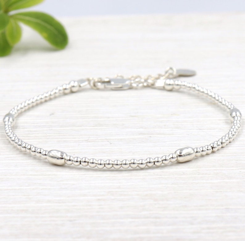 [Bracelet en argent] Notre bracelet en argent sterling pour femme est orné de perles brillantes et d'un charmant élément en argent. Bracelet Chainette en Argent pour Femme, Bracelet Fin pour Femme Informations produit : Délicat et intemporel, cet élégant bracelet en argent s'adapte avec grâce à votre quotidien, qu'il soit décontracté ou raffiné. Leur surface lisse et polie assure un port confortable, même pendant de longues périodes. Exprimez votre amour et votre reconnaissance sincère avec élégance. [Accessoire polyvalent] Passez facilement d'une tenue décontractée de jour à un style raffiné de soirée. Faites-vous plaisir ou offrez-le à un être cher et exprimez votre gratitude avec un bijou toujours tendance., Caractéristiques : 1., Léger et compact, ce bracelet à breloques en argent vous accompagne partout, se rangeant facilement dans vos bagages ou sacs à main, tout en vous gardant élégant et prêt à porter, que ce soit en vacances ou en voyage d'affaires., 2., Délicatement subtil et pourtant unique, notre bracelet en argent sublime votre style personnel avec douceur. Argent 925 rhodié avec zirconium bracelet réglable pour perles semi percée - argent 925 pas cher Contenu de l'emballage : 1 bracelet en argent perlé pour femme Orné de détails raffinés, il ajoute une touche de sophistication à votre style. Spécifications : Matériau : Métal., Couleur : Argent., Quantité : 1 pièce., Taille : Voir photo. Fait main, il est réglable (16-26 cm) donc ça va à tout le monde. Les perles de cuivre et les fils colorés donnent un look bohème et unique. Il ne rouille pas... Bracelet Ajustable Cadeau Femme Bracelet D'été Perles D'Argent Sur Fil | Ré | Gemmes & Vous Bracelet Délicat Polyvalent Son design minimaliste sublime votre élégance naturelle sans écraser votre allure générale, le rendant idéal pour les environnements professionnels.
