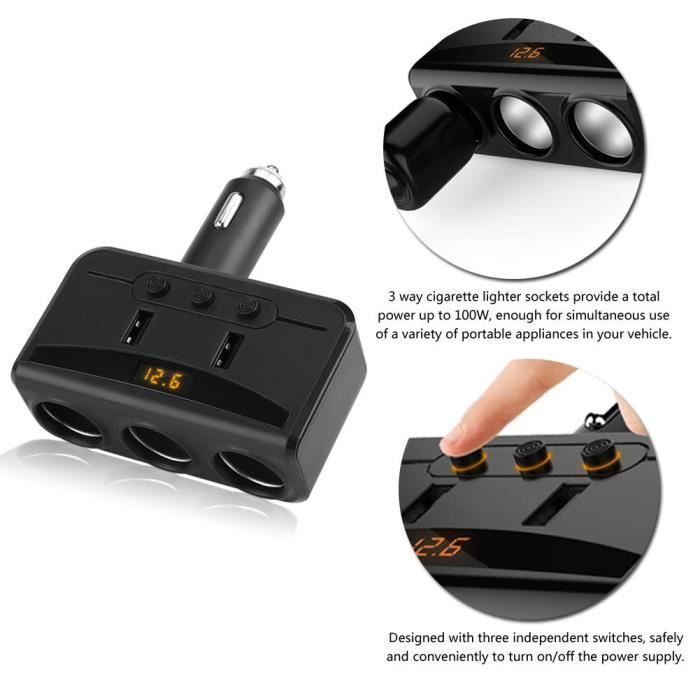 Commutateur Marche/Arrêt et LED: Ce 1 à 2 prise allume cigare double 12V est équipé d'un interrupteur pratique, permettant de couper l'alimentation quand elle n'est pas nécessaire. Le rallonge allume-cigare 1 à 2 est un adaptateur pratique qui permet de charger ou d'utiliser plusieurs appareils simultanément dans votre véhicule. Avec sa double prise, vous pouvez facilement connecter des dispositifs tels qu'une caméra de recul et un GPS sans avoir à débrancher d'autres appareils Nom du produit: Double Rallonge Allume-Cigare 12V/24V Couleur: Noir Quantité: 1 pièce Longueur: 20 cm Optimisez l'utilisation de votre prise allume-cigare avec cette rallonge allume-cigare 12V dotée de deux prises, vous permettant de brancher plusieurs appareils simultanément. Le voyant LED rouge indique clairement l'état de la connexion et facilite la gestion de l'alimentation dans les véhicules Large gamme d'applications: La rallonge prise allume cigare 12V mesure 13., 5 cm, une longueur idéale pour un branchement facile sans encombrement. Ainsi, vous ne devez pas toujours débrancher certains appareils pour en brancher d'autres Protection avec fusible intégré pour éviter les risques de surcharge. YANBORONSN Répartiteur allume-cigare 1 à 2 prises pour voiture, adaptateur allume-cigare avec double interrupteur indépendant, rallonge allume-cigare 12 V 24 V avec fusible 15 A Protection contre les Surcharges: Double rallonge allume cigare 12V isolation interne du câble individuel, gaine de protection externe noire en PVC résistant à la chaleur. Idéale pour les véhicules, motos et bâteaux, cette rallonge de 20 cm facilite la gestion de vos accessoires tels que caméras de recul, GPS, ou autres appareils électroniques sans avoir à débrancher constamment un appareil pour en brancher un autre. Rallonge courte de 20 cm, idéal pour les véhicules avec espace limité tout en offrant une grande flexibilité d'utilisation. RALLONGE ALLUME-CIGARE SÉPARATEUR Double Alimentation Voiture Prise... Rallonge Prise Cigare Allume Thlevel 12V/24V Allume Cigare Adaptateur Répartiteur Prise 15cm 19AWG Câble D'Extension Mâle Vers Femelle Avec Fusible 10A Und Interrupteurs Pour Bateau Voiture Double Prise De Courant Allume Cigare Interrupteur marche/arrêt et voyant LED pour une gestion facile de l'alimentation.