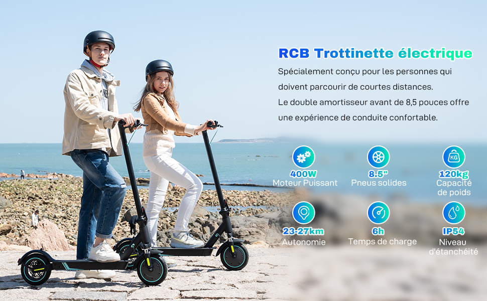 Trottinette Pneus Pleins 8.5 Pouces Trottinette électrique Pliable - RCB - Pneu 8.5 - APP - Vitesse Max 25km H 350 W Mode 3 Vitesses Noir Trottinette électrique Adulte Système de récupération d'énergie prolongeant l'autonomie, recharge en 6-8h avec protection. Moteur à Double Régime : trotinette électriquePuissance nominale 250W conforme RGUE pour une efficacité optimale Pic de 500W permettant des montées jusqu'à 15° Technologie sans balais réduisant vibrations et bruit Système de refroidissement intégré évitant la surchauffe Dynamique adaptée à toutes les pentes urbaines, testé en conditions réelles sous charge de 75kg. Leur structure alvéolée innovante allège le poids et offre une absorption subtile des vibrations, parfaite pour le revêtement urbain. Triple Vitesse Intelligente : ECO: Économie max (15km/h) D : Standard 25km/h (légal en ville) S : Sport 33km/h + régulateur de vitesse ! Polyvalent pour les déplacements courts : Conçu pour les trajets du dernier kilomètre (métro/bus), les déplacements loisirs (parcs/terrains de camping en bord de plage), les courses quotidiennes (supermarché/colis) et l'accès aux commerces locaux (boutiques/cafés), ainsi que la mobilité point-à-point économique et écologique dans les campus/zones d'activité/communautés. Contrôle ultra-précis via l'écran LED. Batterie Haute Performance 36V 7., 5AH : Autonomie 30 km (21 miles) optimisée pour trajets urbains Cellules lithium haute densité (30% plus légères que standard) Recharge sûre en 6-8h Système BMS intelligent avec triple protection : surchauffe/surcharge/court-circuit trotinette electrique adulte Jusqu'à 5 jours d'autonomie pour 8km journaliers ! Trottinette Électrique Légère et Performante : Votre Partenaire Urbain Pratique ! ASCOOTER Trottinette Électrique Adulte S1 Essential Son châssis en aluminium 6061-T6 et sa poignée intégrée offrent une prise en main aisée au format compact 112x15,3x50,3 cm (optimisation d'espace). Pneus 8,5 Pouces Solides à Structure Alvéolée : Profitez d'une conduite fluide et sans souci avec nos pneus pleins en caoutchouc trottinette electrique de 8,5 pouces Plus jamais de crevaison ! Sécurité Renforcée : Le triple freinage (EABS + disque + régénération) assure une distance d'arrêt réduite (testée en conditions contrôlées). Pliage Intelligent 3 Secondes : Verrou unique à déblocage instantané Verrouillage automatique par gravité lors du positionnement Structure renforcée en alliage aéronautique (résiste à 10 000 cycles) Dimensions pliées : 108x43x46cm trotinette electrique adulte optimisées pour métro/coffre Sécurité certifiée EN 17128 : aucun risque de dépliage accidentel. Pneus 8,5 Pouces Solides à Structure Alvéolée : Profitez d'une conduite fluide et sans souci avec nos pneus pleins en caoutchouc trottinette electrique de 8,5 pouces. Moteur 250W ultra-silencieux (55dB) avec vitesse maximale de 25 km/h et 3 modes réglables. Ces pneus résistent aux clous et débris, garantissant sécurité et durabilité. Il y a 6 jours · EVERCROSS EV85F- Liberté et efficacité : notre trottinette électrique adulte offre une conduite fluide et une autonomie exceptionnelle. Frein à disque e Frein , Double amortisseurs plus confortable Confort et Fiabilité : Structure en nid d'abeille absorbant efficacement les vibrations. Conçus pour les rues de la ville, ils combinent robustesse et confort de conduite.