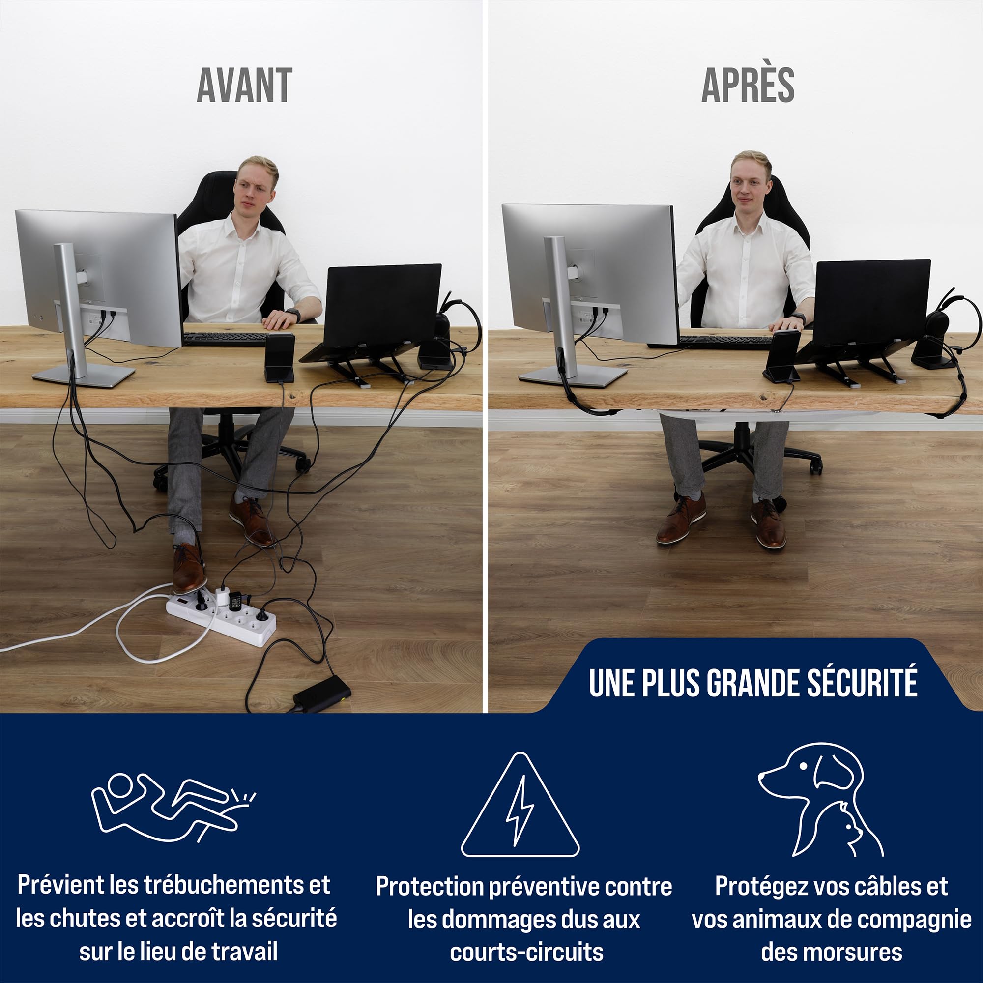 Forte adhérence : les serre-câbles auto-agrippants disposent d'un dos autocollant unique avec une forte adhérence qui adhère fermement à la plupart des surfaces lisses (bois, métal, verre, carrelage, etc. Vous pouvez fixer des clips de câble sous votre bureau avec des crochets adhésifs pour garder les câbles bien rangés sur votre bureau ou dans d'autres espaces de travail et rendre votre expérience de travail plus confortable. Gestion des câbles sous le bureau - Support de câbles stable - Organisateur de câbles autocollant sans perçage pour lieu de travail, table de chevet, organisation de cuisine Cache fils et range câbles · Conduits et raccords · Fusibles, disjoncteurs et panneaux électriques; Gradateurs, interrupteurs et minuteries. Gradateurs... ) et ne laisse aucun résidu lors du retrait. Cache Câble Bureau Belle Vous Plateau Range Cable Bureau - L40,2c - Panier De Rangeent Rangement Câbles Chargeurs 【Facile à utiliser】La conception segmentée flexible permet des ajustements faciles sans retirer l'ensemble de l'unité, assurant ainsi une installation facile. Utilisation polyvalente : les supports de câbles autocollants sont vraiment polyvalents – que ce soit dans la cuisine, le bureau, l'atelier ou sur le balcon, ils mettent de l'ordre dans les câbles emmêlés tout en gardant les écouteurs, les guirlandes lumineuses LED ou les petits outils à portée de main. Passe Cable Bureau Lynban Gestion Des Câbles Sous Le Bureau, Organisateur De Câbles Auto-adhésif, Facile à Installer, Noir, 6 Pièces, 94 Cm De Long Support Cable Bureau Le design réglable autobloquant garantit que les câbles restent en sécurité sans se desserrer ou glisser. Support de câble autocollant Gestion des câbles : ce kit d'organisation de câbles contient 20 paires de supports de câbles de 12 x 3 cm et 20 paires de crochets adhésifs de 3 x 3 cm.
