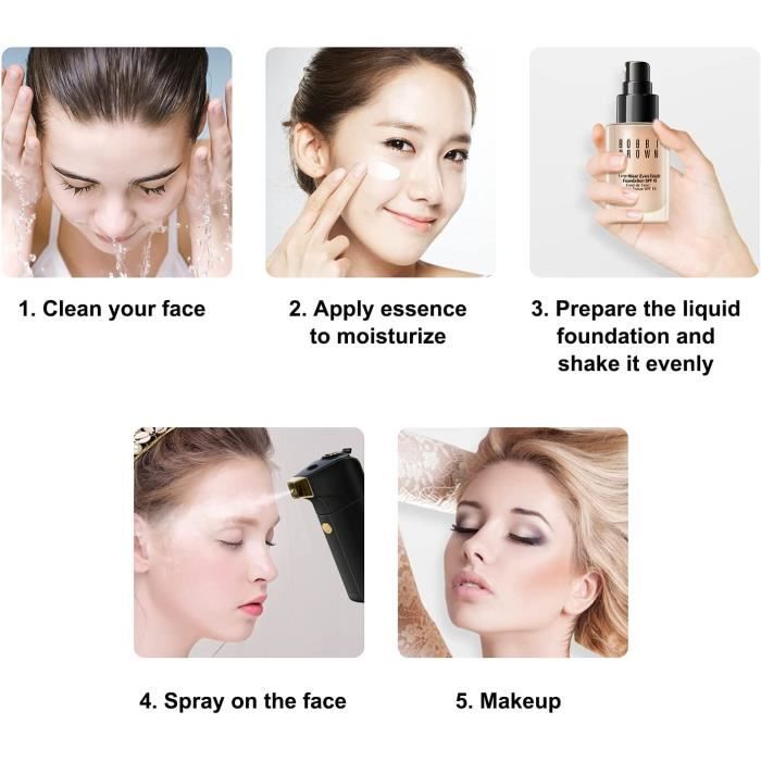 Vous pouvez utiliser votre ordinateur portable, votre banque d'alimentation et votre chargeur de voiture pour votre kit de pistolet avec un câble USB à tout moment, n'importe où. En voyage ou en déplacement, ce mini vaporisateur facial est le compagnon idéal pour des soins de la peau continus. Facile à utiliser : Grâce à son fonctionnement simple et à sa configuration rapide, vous pouvez commencer à améliorer la santé de votre peau d'une simple pression sur un bouton 1., ATOMISATION FINE: L'ensemble de pistolets pulvérisateurs sans fil peut décomposer les produits de soins de la peau dilués à base d'eau à haute viscosité en nano-sprays, se mélanger avec de l'oxygène, favoriser l'absorption de la peau et obtenir l'effet d'une hydratation en profondeur. MULTIFONCTIONNEL ET POLYVALENT: Le mini kit de pistolet pulvérisateur est équipé de gobelets à liquide de différentes capacités, le gobelet à liquide de 5 ml répond aux exigences de capacité et le pistolet pulvérisateur peut également régler le degré d'atomisation. Divisé en deux niveaux réglables selon la finesse du brouillard d'eau Convient pour la beauté du visage, la peinture d'art, le tatouage, la décoration de gâteaux, le maquillage, la manucure, la coloration de modèles Toutes les pièces sont intégrées, légères, portatives et faciles à transporter4., CONCEPTION RECHARGEABLE: Le pistolet à gâteau adopte une conception rechargeable. Aérographe Nano Spray, Pulvérisateur D'oxygène à L'eau Toutes les pièces sont intégrées, légères, portatives et faciles à transporter La poignée est antidérapante et le pistolet de pulvérisation présente un bijou comme le sens visuel sous la lumière et la nuit3., SANS FIL ET PORTABLE : Le kit de pistolet pulvérisateur pour la peinture a une batterie et un compresseur intégrés, éliminant ainsi le besoin de fils compliqués. Convient pour la beauté du visage, la peinture d'art, le tatouage, la décoration de gâteaux, le maquillage, la manucure, la coloration de modèlesSpécification:Type d'article : aérographe facial à oxygèneModèle : HB08Matériau : ABS, TPRDurée d'utilisation : 50-60 minutes (une utilisation continue pendant 5 minutes s'arrêtera automatiquement)Débit d'air : 12 L/min Pression de fonctionnement : 2-11 psi (pression réglable)Batterie d'alimentation Drfeify aérographe à brouillard nano Aérographe portable haute pression 50 ml 100 ml bouteille... Vapeur Visage Qiilu Aérographe Facial Pour Soins De La Peau Oxygène Facial Aérographe Portable Maquillage 2 Niveaux Brouillard Vous pouvez utiliser votre ordinateur portable, votre banque d'alimentation et votre chargeur de voiture pour votre kit de pistolet avec un câble USB à tout moment, n'importe où., 5., MULTIFONCTIONNEL ET POLYVALENT: Le mini kit de pistolet pulvérisateur est équipé de gobelets à liquide de différentes capacités, le gobelet à liquide de 5 ml répond aux exigences de capacité et le pistolet pulvérisateur peut également régler le degré d'atomisation.