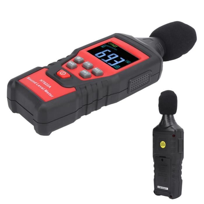 Mesure Bruit En Temps Réel Sonomètre Professionnel 30-130dB - Affichage LCD Décibel/Température/Humidité Avec Alarme Affichage Led 11 Pouces Compteur DB Professionnel Portable XIJ Sonomètre Compteur De Décibels De Niveau Sonore Numérique LCD Portable, Haute Sensibilité Décibelmètre Avec Alarme Technologie de microphone haute performance: en utilisant un capteur de microphone capacitif avec une membrane de vibration métallique, ce compteur de bruit monté mural offre une sortie pratique avec des temps de réponse instantanés. Spec: Item Type: Sound Level Meter Material: ABS Measurement Range: 30-130dB Frequency Response Range: 31., 5Hz-8., 5KHz Frequency Weighting: Aweighting Response Speed: 8 times/second Accuracy: ±1., 5dB Resolution: 100dB1dB Power Supply Mode: DC5V 1A Style du port d'alimentation: Type C Température de travail: 0-40 ° C Humidité de travail: 10% -80% RH Batterie: Recharteable Batterie Li 2000mAh x 1 (inclus) Comment utiliser: Suivez les instructions dans le niveau de la manuelle Cela facilite la lecture des mesures à l'extérieur ou dans des environnements bien éclairés, améliorant l'utilisabilité dans divers paramètres. Fockety Compteur de Niveau Sonore Numérique, Compteur de Décibels Suspendu 30 à 30 DB, Compteur de Bruit D'écran LCD de 3 Pouces, Lecteur de Décibels avec Alarme Sonore Système d'alarme avancé: équipé d'un vaste système d'alarme, le niveau du niveau sonore à grand écran alerte les utilisateurs avec des lumières de l'indicateur clignotant et des alertes sonores lors d'atteindre des seuils prédéfinis. Ce microphone haute performance assure des mesures précises et stables du niveau sonore, ce qui le rend adapté à diverses applications, y compris la surveillance du son dans les lieux de divertissement et les établissements d'enseignement. Voir plus de détails Vous avez des questions à propos des informations du produit en français Connectivité externe du haut-parleur: Conçu pour la polyvalence, le compteur de bruit de décibels de mur d'écran LCD prend en charge la connexion aux haut-parleurs externes via un câble sonore de 3,5 mm. Affichage clair et lumineux: avec un écran numérique HD de 3,0 pouces, le grand compteur de bruit numérique à écran LCD assure une visibilité claire même en lumière directe du .