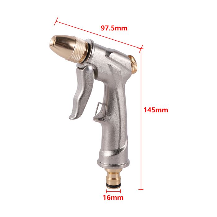 Douchette de jardin en métal avec tige haute pression, 8 modes, pistolet pulvérisateur de jardin haute pression, poignée en caoutchouc antidérapant, pistolet à eau multifonction pour arroser la pelouse, lavage de voiture Ces connecteurs sont résistants aux fuites et à la rouille et garantissent une connexion étanche et emboîtable Jet D'eau Argenté Galvanisé, Jet D'eau à Haute Pression, Jardins D... agogo | Pistolet À Eau Haute Pression L'appareil économise du travail est conçu de manière ergonomique, de sorte que vous pouvez l'utiliser longtemps et profiter du plaisir de l'arrosage La construction en plastique antidérapant empêche le glissement et réduit la fatigue de la main lors d'une utilisation prolongée buse de nettoyeur de verre haute pression pour le verre de nettoyage de jardin d Avec une seule pression, le tuyau se verrouille en place. Dimensions : 37 x 16 cm Poids : 185 g. ☛ La construction en plastique antidérapante empêche le glissement et réduit la fatigue de la main lors d'une utilisation prolongée ☛ Pistolet à eau haute pression, avec plusieurs modes de pulvérisation, idéal pour laver votre voiture, arroser les plantes, nettoyer le trottoir. Pistolet à eau haute pression : vous vous sentirez très à l'aise lorsque vous utilisez ce pulvérisateur à buse. ☛ Le pistolet à eau portable haute pression prend également en charge le raccordement de longs tuyaux qui peuvent être facilement démontés pour s'adapter à différents besoins de nettoyage Contenu : 1 pistolet à eau haute pression Aucun autre outil n'est nécessaire. Matériaux de qualité supérieure : notre buse de tuyau d'arrosage dispose d'une buse galvanisée épaisse, résistante à la haute pression, à la rouille, à l'usure et sans odeur. Notre pistolet à eau haute pression est conçu pour une prise en main confortable avec une buse avec une boucle qui permet d'économiser du travail.
