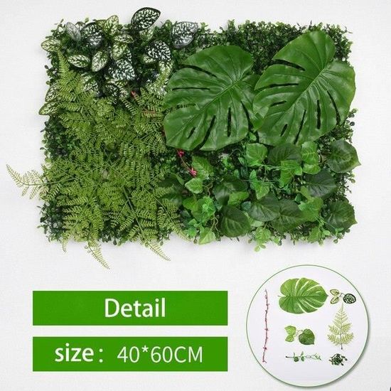 Large application : ce mur de gazon artificiel est très approprié pour ajouter de l'intimité aux zones de terrasse extérieures, embellir et transformer vos clôtures, murs, jardins, terrasses, trottoirs, toiles de fond, intérieurs et extérieurs avec des apparences réalistes, ou des designs créatifs pour les fêtes, les mariages, les toiles de fond de photographie, les toiles de fond de scène et plus encore Panneau Mural De Fleurs Artificielles | La Maison Du Jardinier Un excellent cadeau pour vos proches, amis et collègues de travail. Facile à installer et à entretenir : ces panneaux muraux de plantes artificielles sont faciles à installer, peuvent être fixés à n'importe quel mur ou clôture. Peignez doucement les feuilles avant l'installation pour un aspect plus naturel. Ces panneaux muraux de verdure n'ont pas besoin d'eau sauf pour le nettoyage, pas d'entretien, pas besoin d'utiliser d'autres outils Dimensions : environ 60 x 40 cm Tapez 36 Panneau mural de fleurs artificielles 40x60cm, toile de fond Matériau PE de qualité supérieure : fabriqués à partir de polyéthylène haute densité (PE), nos panneaux de gazon artificiel sont non toxiques, inodores et sans danger pour n'importe quel espace. Caractéristiques principales : Taille adaptée : cette toile de fond en gazon artificiel mesure environ 60 x 40 cm, peut être coupée dans n'importe quelle forme si nécessaire Caractéristiques : Nom du produit : panneaux muraux en herbe., Texture : plastique. Chaque feuille est finement conçue avec des textures naturelles, des dégradés de couleur et des nuances réalistes pour un look authentique. Nos murs de fleurs ne sont pas autoportants, mais sont livrés dans des panneaux en maille de plastique flexible de 40 cm x 60 cm (L x L) que vous pouvez clipser... Herbe Artificielle Panneau Mural D'herbe Verte Artificielle, Décor Mural De Verdure En Toile De Fond D'herbe PE De Qualité Supérieure Pour Le Marché Des Bureaux Intérieur Et Extérieur 60x40cm (Type Déco Murale Plantes Artificielles Vert Design 3D réaliste : notre mur de gazon artificiel est composé de différentes plantes et fleurs pour le rendre plus vivant, réel et dynamique.