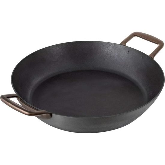 Description du produit : Poêle à frire en fonte japonaise antiadhésive, poêle à frire forgée à la main avec couvercle et poignée en bois, grande casserole pour cuisinière à gaz et plaques à induction Description du produit La surface non revêtue intensifie le goût de vos aliments et ne contient pas de matériaux synthétiques pour une expérience de cuisson plus traditionnelle et plus saine. Poêle Fer 28 Cm Sans Revêtement Turk 65530 Poêle En Fer, Forgée à La Main En 1 Morceau, 30 Cm Ustensile Cuisson Haute Température Caractéristiques techniques : Matériau : fer + bois Dimensions : 24 cm / 28 cm Contenu de l'emballage : 1 poêle en fer., 1 couvercle en bois. Que ce soit pour rôtir de la viande, sauter des légumes ou préparer des sauces fines, cette poêle offre des résultats constants avec des variations de température minimales. Facile à nettoyer : grâce à sa surface non revêtue, il suffit de rincer et d'essuyer après utilisation. Description de Poêle à frire traditionnelle en fer forgé à la main non revêtu pour une performance de cuisson pure 1. Artisanat forgé à la main Cette marmite en fer est une véritable œuvre d'art, fabriquée à la main selon des méthodes de forgeage traditionnelles, ce qui rend chaque pièce d'une beauté unique et améliore l'esthétique de votre cuisine. 2. Options de cuisson... Poêle à frire en fer forgé en plusieurs tailles Sûr et sain : contrairement aux ustensiles de cuisine à revêtement chimique, cette poêle est fabriquée en fer naturel qui s'améliore avec l'utilisation. Excellente conservation de la chaleur : les parois en fer épaisses et le fond large assurent une répartition uniforme de la chaleur et une conservation durable de la chaleur. La forme polyvalente convient à une large gamme de plats de différentes cuisines du monde.