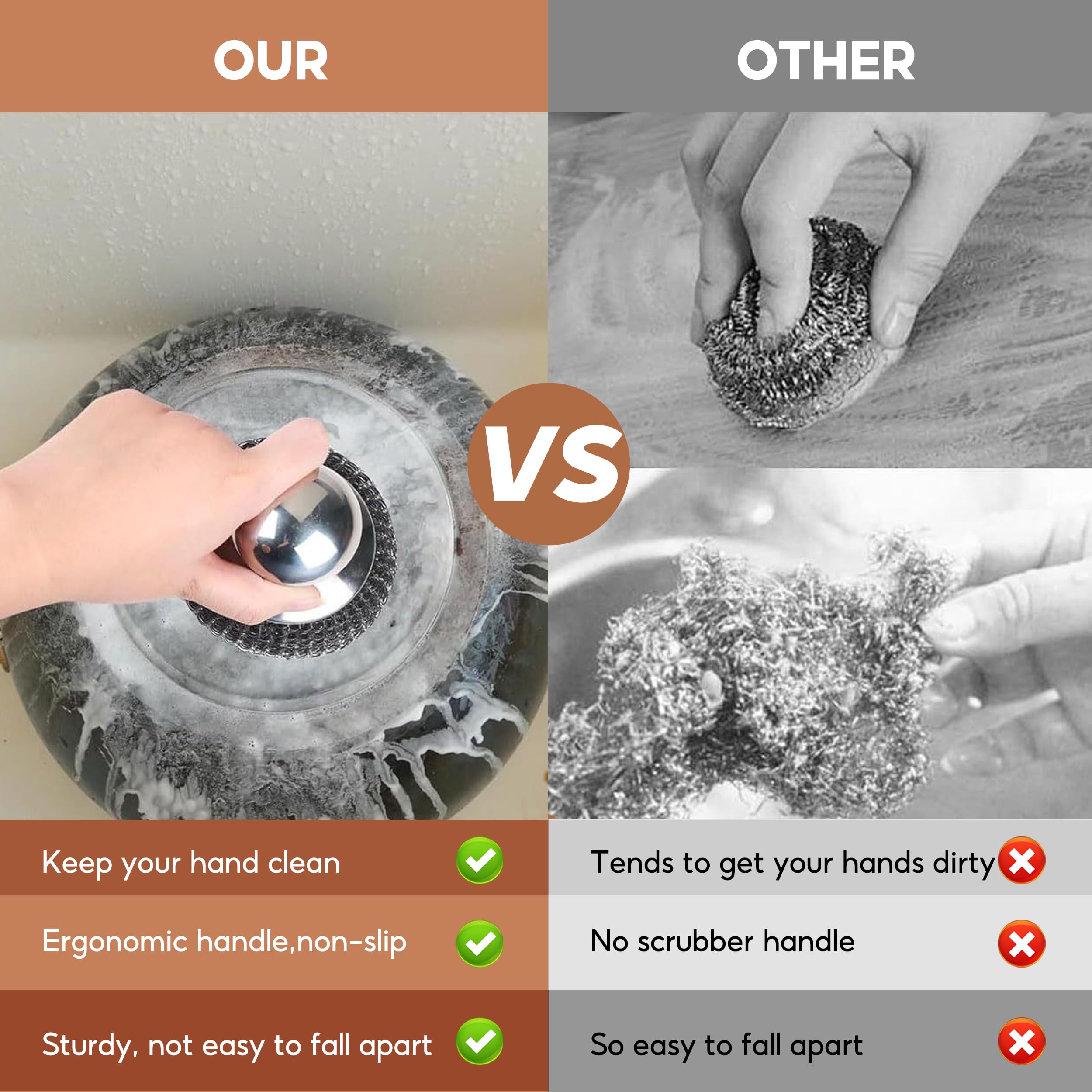 Design unique : L'acier inoxydable est étroitement enroulé autour de la brosse métallique, et sa forme arrondie épouse les contours de la main, la rendant facile à manipuler et pratique à utiliser Matériau du produit : cette brosse à billes en fil d'acier est fabriquée en acier inoxydable, pas facile à rouiller et à corroder. Brosse Récurer Acier Inoxydable Poignée Nettoyage Kit 2 Brosses à Récurer En Laine D'acier Avec Poignées - Nettoyage Puissant Casseroles Et Barbecues Brosse Laine Acier Inoxydable Poignée Nettoyage Cuisine Fabriquée en acier inoxydable, cette brosse à billes métallique contient 2 brosses à billes métalliques avec poignées ainsi que 5 boules de fil de rechange pour répondre à vos besoins quotidiens pour le nettoyage des ustensiles de cuisine. Design de la poignée : cette brosse à billes en fil d'acier a un design convexe arrondi uniquement sur le dessus, ce qui est confortable à tenir dans la main, facile à saisir. Facile à nettoyer : les brosses métalliques en acier inoxydable sont faciles à nettoyer. Éponges en laine d'acier, 30 pièces, boules de... – Grandado Eponge Magique Set De 4 Éponges Acier Inoxydable - Avec Poignée Et Sans - Nettoyage Casseroles, Poêles, Grilles - Anti-Rouille éponge Acier Inoxydable ● Poids du produit : 200 g., Conseils : 1., Les mesures étant prises à la main, les tailles indiquées peuvent varier légèrement., 2., Les couleurs peuvent varier légèrement en raison des différentes résolutions d'écran., 3., Étant donné que le produit est compressible, il peut y avoir des écarts dans les dimensions mais dans la plage normale. Taille du produit : la brosse à boule en acier inoxydable unique mesure 9 x 9 x 6 cm, et la laine d'acier unique mesure 9 x 9 x 2 cm. Spécifications: ●Matériel: acier inoxydable ● Couleur : argenté.
