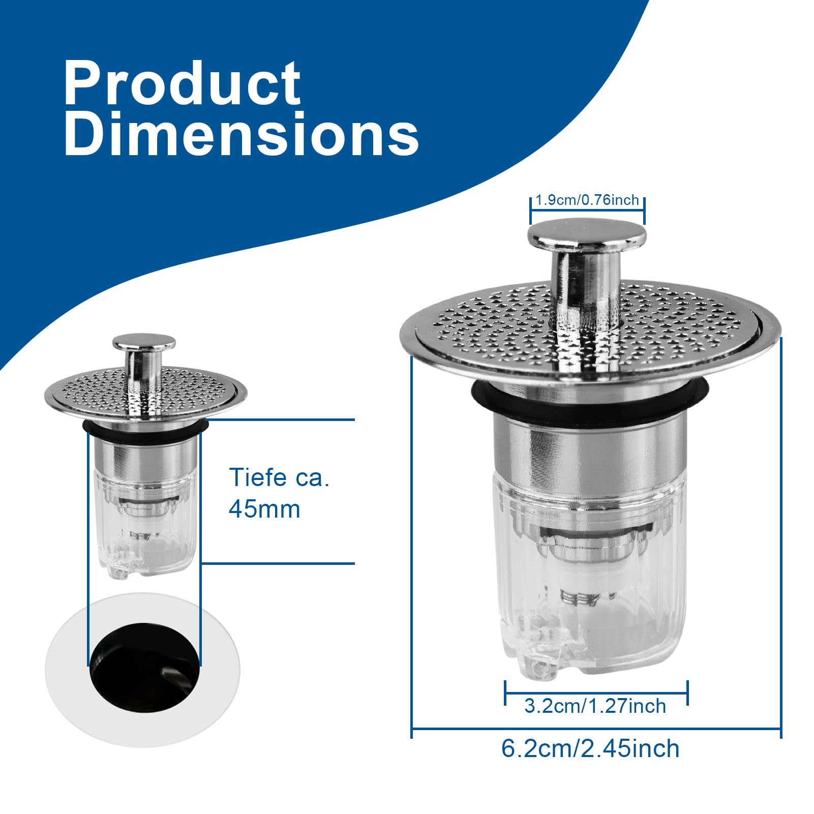 Drain magic stopper combine un bouchon étanche avec un tamis intégré. Le bouchon universel pour lavabo Drain Magic 2en1 avec filtre pratique combine deux fonctions en un seul produit intelligent : il assure une fermeture fiable du lavabo et retient en même temps les cheveux ou la saleté, ce qui te permet d'éviter les bouchons Nom : bouchon de lavabo universel Drain Magic 2 en 1 Dimensions : 6 cm x 6 cm (voir le tableau des tailles pour plus de détails) Scénarios d'utilisation : lavabo, baignoire, lavabo, kit de douche. Empêche efficacement les blocages : le tamis intégré capture efficacement les cheveux, la saleté et les petites particules. Kit pratique pour une utilisation à long terme : 2 bouchons de vidange Drain Magic avec tamis d'évacuation, 6 joints d'étanchéité. Nettoyage facile et aspect de qualité pour votre salle de bain ou votre cuisine. Remarques : Les mesures étant prises à la main, les tailles indiquées peuvent varier légèrement. Bouchon Lavabo Salle De Bain, Clapet Bonde Lavabo, Pop Up Filtre Vidange Baignoire Universel Sink Drain Plug With Anti Clogging Anti Odeur Et Anti Insectes Strainer 72116708 Fonction 2 en 1 : tamis et bouchon combinés : un design intelligent 2 en 1 ! Contenu de la livraison : 1/2 bouchons Drain Magic. Ajustement parfait pour tout type de bonde : notre bouchon s'adapte universellement aux canalisations de 2,8 à 5 cm de diamètre grâce aux 3 joints d'étanchéité en silicone fournis, sans outils. Le bouchon et filtre Drain Magic 2-en-1 de MediaShop est une solution innovante pour tous ceux qui souhaitent garder leurs drains de cuisine et de salle de bain hygiéniquement propres. Ce produit pratique combine les fonctions d'un bouchon de lavabo fiable avec un filtre de drainage efficace. Le Drain Magic attrape les cheveux et la saleté pour prévenir les obstructions, tout en... Protection Canalisation Anti-odeurs Bouchon Et Filtre Universel Adapté Aux évacuations évier Bouchon De Lavabo Universel La couleur réelle de l'article peut varier de celle de la photo en fonction des paramètres d'affichage et de luminosité de votre ordinateur.