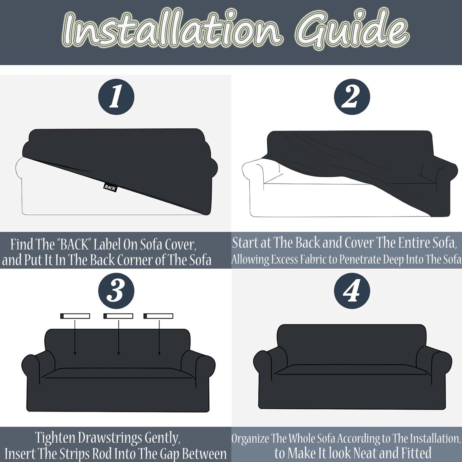 Gris Housse De Canapé Extensible 3 Places Revêtement De Canapé Avec