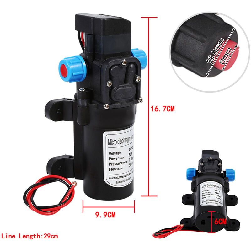 Mini Pompe à Membrane Auto-AmorçAnte DC6-12V 380, Levage De 1 à 5 Pompe Miniature Débit 2-3L/min Zerone Pompe 12 V Pompe Auto-amorçante Miniature DC6-12V Pompe à Pompe Aquarium Aération Petit Débit ✪✪✪✪✪ [Largement applicable] La pompe peut être utilisée comme pompe à eau, pompe à air ou pompe d'aération d'aquarium, aération d'aquarium. Spécification : Type d'élément: Pompe auto-amorçante Tension: DC6 -12V Courant à vide: 0,18A Courant de travail en : 0,3A Débit maximum: 2-3L/MIN Pression de travail: 0,05-0,15 MPa Levée la plus élevée: env. 6 mm/0,2 po Les tuyaux d'entrée et de sortie des spécifications de la pompe sont: diamètre extérieur 9 mm diamètre intérieur 6 mm Utilisation du produit: 1., Appareils électroménagers - équipement d'eau potable, machine à thé, machine à café, machine à cola, machine à jus, machine à lait, lave-vaisselle, machine de désinfection 2., Imprimerie - imprimante à jet d'encre, machine de pulvérisation de code, etc., 3., Équipement d'aquarium, équipement de bonsaï 4., Équipement électronique, équipement médical 5., Équipement de pulvérisation, équipement d'atomisation, pulvérisateur électrique 6., Équipement de traitement de l'eau, équipement de purification, filtres, équipement Peut être utilisé comme pompe à eau, ou comme pompe à air, ou comme pompe d'aération pour aquarium, aération d'aquarium. Protection thermique, bon fonctionnement, longues heures de travail ✪✪✪✪✪ [Fonction auto-amorçante] Grande quantité d'eau, avec fonction auto-amorçante. Mini pompe à huile 12V huile de moteur électrique ... – Grandado ✪✪✪✪✪ [Protection thermique] Protection thermique, bon fonctionnement, longues heures de travail. 1 ~ 5 m/3,3 ~ 16,4 pieds Aspiration maximale: env.