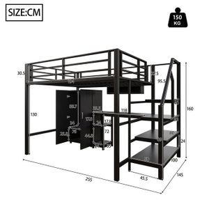 Lit Superposé 140x200 Cadre De Lit En Métal 140 X 200 Cm, Lit En Fer Avec Bureau, Lit Mezzanine Avec Quatre Petites étagères Et Une Grande Bibliothèque Pour Enfants, Adolescents Et Adultes, Noir (140 X Lit Mezzanine Enfant Avec Bureau Les Rampes et les Escaliers Protègent la Sécurité de l'enfant, Grimpant plus en toute sécurité : Les rampes et les escaliers conçus spécifiquement pour les enfants, non seulement beaux et généreux, mais peuvent également fournir une protection efficace lorsque l'enfant entre et sort du lit, pour assurer la sécurité de l'enfant, afin que les parents se sentent plus à l'aise. Ce lit mezzanine en métal comprend un bureau, une étagère et une échelle. Son design simple et élégant s'intègre à différents styles d'intérieur et sublime la pièce. Équipé de bandes lumineuses led, il apporte non seulement du confort à votre intérieur, mais crée également des ambiances variées grâce à ses couleurs variées Style. Contemporain · Taille. 140x200cm · Caractéristique spéciale. Barre lumineuse LED 7 couleurs et interface USB · Couleur. A-noir · Matériau du cadre. Fer Il est possible qu’ils ne soient pas livrés simultanément. Étagère de Séparation Multicouche et Bureau, étude et Rangement : Le lit est équipé d'une étagère de séparation multicouche et d'un bureau, ce qui est pratique pour les enfants pour ranger des livres, de la papeterie et d'autres fournitures scolaires, tout en offrant un espace d'étude spacieux, afin que les enfants puissent apprendre joyeusement dans un environnement confortable. Lit Mezzanine Enfant 140x200 cm avec Bande Lumineuse LED et Port USB,métal Lit superposé 2 Place avec bureau, sans matelas, noir - Maison Prises de Courant et Ports USB, Chargement Pratique sans Souci : Le lit est intelligemment conçu avec des prises de courant et des ports USB, ce qui est pratique pour les enfants pour charger leurs appareils électroniques à tout moment, que ce soit pour l'apprentissage ou le divertissement, peut maintenir une puissance suffisante, de sorte que le plaisir est ininterrompu. Lit Mezzanine avec Bureau Lit Mezzanine Enfant Ce lit superposé est soigneusement conçu avec une structure en fer et en MDF, offrant une structure solide et durable, ainsi qu'une forte capacité de charge. Les barrières et marches spécialement conçues sont non seulement esthétiques, mais assurent également une sécurité optimale aux enfants lorsqu'ils montent et descendent du lit. Ce produit sera livré en deux colis. Le lit est également équipé d'étagères multicouches et d'un grand bureau où les enfants peuvent ranger facilement leurs fournitures scolaires et étudier confortablement. La Lumière Ambiante à 7 Couleurs Peut être Ajustée à Volonté, Créant un Environnement d'apprentissage Coloré : équipé d'une lumière ambiante à 7 couleurs avec télécommande, le mode d'éclairage et la luminosité peuvent être librement ajustés en fonction des préférences et des besoins de l'enfant, ajoutant de la chaleur et du plaisir à l'apprentissage et à la vie de l'enfant. Merci de votre patience. Il est équipé d'un éclairage d'ambiance à 7 couleurs, réglable par télécommande, créant un environnement d'apprentissage coloré pour votre enfant et lui offrant des heures de jeu.