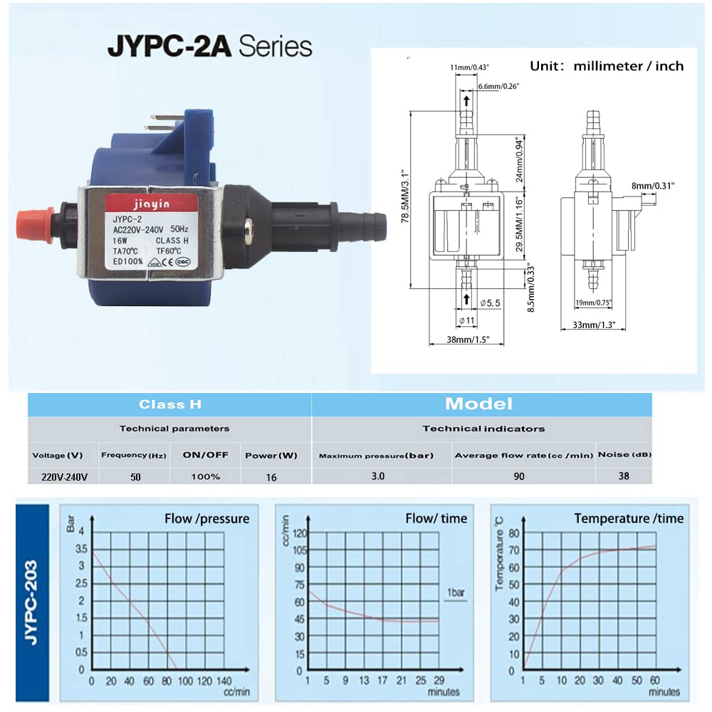 nettoyeur à eau haute pression -Machine à dériver l'eau - Machine de Pompe Nettoyeur Vapeur Jiayin Pompe à Eau électromagnétique, Compatible Avec Jiayin, JYPC-5 Pompe Haute Pression Machine à Café Pompe à eau électromagnétique haute pression for machine à café, nettoyeur de fer chaud, pompe auto-amorçante, compatible avec Jiayin, JYPC-5 AC 220 V - 240 V, 9 bar, 45 W Débit : 550 cc/minPression : 9 barsTension : CA 220-240 V., Puissance : 45 W., Fréquence : 50 Hz. Merci d'avoir choisi ma boutique. 19 vendus 5. Jiayin JYPC-5 AC 220 V - 240 V 9 bar 45 W pompe à eau électromagnétique haute pression Machine à café nettoyeur fer chaud pompe auto-amorçante Je vends toutes sortes d'accessoires électriques. S'adapte à différents modes de préparation : les paramètres réglables de la pompe à eau permettent à la machine de prendre en charge diverses méthodes de préparation du café telles que l'espresso et le café américain Adaptable à une variété de liquides : Il peut transporter des liquides tels que des détergents, avec une bonne passabilité et une large gamme d'applications. Application : ComptageThéorie : Pompe électromagnétiqueStructure : Pompe auto-amorçanteNuméro de modèle : JYPC-5Pression : Haute pressionCarburant : ÉlectriquePuissance (W) : ÉlectriqueUtilisation : Pompe péristaltiqueBienvenue !