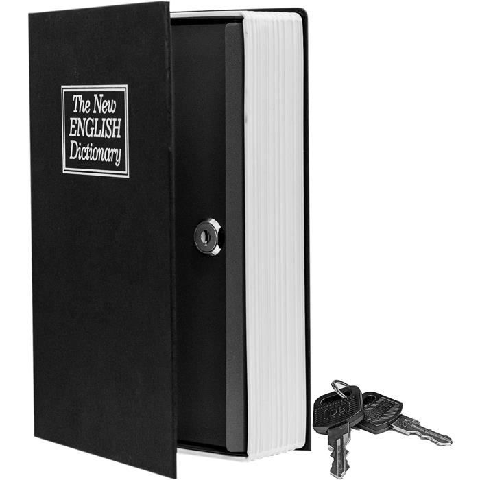 Ce coffre-fort à livre avec serrure à combinaison allie sécurité, discrétion et élégance. Ce coffre-fort en forme de livre avec serrure à combinaison est idéal pour ranger vos fonds personnels, bijoux, cadeaux, documents, journaux intimes ou autres objets de valeur Son design réaliste en forme de livre avec des pages en résine détaillées lui permet de se fondre parfaitement dans une bibliothèque et de servir de cachette secrète pour argent, bijoux, clés et documents. En tant que cadeau original, ce livre coffre secret est parfait pour Noël, anniversaire ou pendaison de crémaillère, alliant praticité, sécurité et design élégant. 【Cachette discrète】Ce livre coffre secret se fond dans votre bibliothèque ou bureau, transformant une simple boîte de sécurité livre en cachette secrète pour documents, argent liquide ou bijoux. Cachette Discrète Argent Bijoux Coffre Fort Caché Coffre-fort Livre Secret - Compartiment Caché Avec Serrure à Clé Sécurité Maison Boîte Sécurité Discrète Bijoux Fabriqué en carton robuste, ABS et acier renforcé, ce livre coffre-fort est solide et durable. 【Service client & Garantie】Votre satisfaction est notre priorité. Nous offrons également un retour et un échange simples et rapides pour un achat en toute confiance. Grâce à son code à 3 chiffres, vous bénéficiez d’une protection fiable sans risque de perdre vos clés. Coffre Fort Livre Avec Serrure A Combinaison Coffre-Fort De Dictionnaire De Detournement Coffre Avec ses dimensions compactes de 18×11,5×5,5 cm, cette boîte de sécurité livre portable est idéale à la maison, au bureau, en résidence étudiante ou en voyage, pour protéger vos objets de valeur en toute discrétion. Coffre-fort caché discret pour une intégration sans couture] : nos coffres-forts cachés pour la maison disposent d'un extérieur fabriqué avec du papier de haute qualité, conçu pour imiter l'apparence et la sensation d'un vrai livre