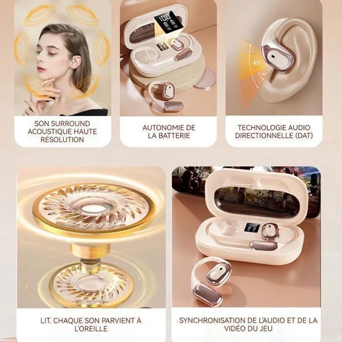 Découvrez quels écouteurs à conduction osseuse sont faits pour vous dans notre sélection des meilleurs modèles en 2025 [Longue durée de vie de la batterie] Technologie 5., 4 pour une connectivité stable et un son hifi. Casque Sans Fil Bluetooth 5.4 Aide Auditive Fdit Ecouteurs Auditifs à Conduction Osseuse Pour Difficultés Auditives écouteurs Aide Auditive Bluetooth 5.4 188 g / 6,6 oz Version : V5., 4 Méthodes de connexion : , sans fil 2,4 GHz Style de port : tour de cou Principe : conduction osseuse Annulation du bruit : réduction du bruit des appels intelligents par l'IA Mémoire intégrée : 32 Go Réponse en fréquence : 20 Hz - 20 kHz Réponse en fréquence de l'aide auditive : F1≤230 Hz, F2≥6,5 kHz Pression sonore de sortie maximale (OSPL90) : ≤120 dB Valve moyenne haute fréquence (OSPL) : ≤105 dB Gain sonore sur toute la plage (valve moyenne haute fréquence) : 32 dB Bruit d'entrée équivalent : ≤12 dB Distorsion harmonique : ≤1% Type de batterie : Li Batterie (intégrée) Capacité de la batterie : 230 mAh Courant de charge : 180 mA Temps de charge : 2 heures Temps de travail : 30 heures (mode aide auditive), 20 heures (mode ) Étanche à l'eau et à la poussière : indice IP56 Comment utiliser : Utiliser immédiatement après la mise sous tension. les matériaux légers assurent la stabilité et aucune pression sur les oreilles ou la tête, idéal pour un port prolongé. dispose d'un omnidirectionnel avec une large gamme de fréquences. Autonomie prolongée de la batterie : dotée d'une batterie intégrée de 230 mAh qui fournit plus de 30 heures en mode aide auditive et plus de 20 heures en mode, combinée avec un indice d'étanchéité IP56 pour une performance fiable pendant le sport et les activités de plein air Ecouteurs sans fil à la conduction osseuse les utilisateurs peuvent personnaliser les paramètres via une application mobile. [Qualité sonore supérieure] La conception de la chambre indépendante avec des oscillateurs haute puissance garantit un son clair et concentré. [Écoute personnalisée] Le traitement du son avancé identifie avec précision les sons, offrant plusieurs modes pour différents scénarios.