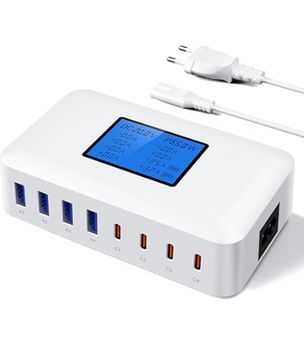 gan tech 200w 6-port usb charger 2usb-a+4usb-c fast charging desktop charging st Chargeur Sécurité Protection Surchauffe Corde Extensible Chargeur USB-C 200W - 8 Ports - Charge Rapide QC4.0 - PD 65W - Compatible MacBook Et Smartphones - Téléphonie Chargeur Usb Multiple Poursée de manière commodé: ornée d'une corde extensible pour une polyvalence inégalée dans d'innombrables circonstances, ses dimensions magnifiquement équilibrées augmentent à la fois la mobilité et la fonctionnalité à de nouveaux sommets Description du produit USB C Fast Charger, USB C Charger Station de charge : Avec une configuration multi-ports, ce bloc USB C Block rationalise la charge pour ceux qui ont besoin de déclencher divers appareils simultanément, offrant des interfaces à double sortie pour une productivité accrue Découvrez le Chargeur GaN 200W à 6 ports USB-C, une solution de charge puissante et compacte pour tous vos appareils. Grâce à la technologie avancée GaN (nitrure de gallium), ce chargeur offre une puissance élevée tout en étant plus petit et plus efficace que les chargeurs traditionnels Il fonctionne avec la majorité des marques et des modèles disponibles sur le marché Caractéristiques principales : Chargeur GaN à 4 ports comprenant 4 ports USB-C Charge jusqu'à 4 appareils avec une puissance totale de 200 W Technologie GaN intégrée fournit une charge puissante et efficace Chargeur conçu pour être facilement accessible, posé sur un bureau Chargeur à compatibilité universelle prenant en charge la fonction de recharge rapide des appareils PD 3.1... La conception avancée de dissipation de chaleur assure le contrôle de la température lors d'une utilisation à long terme avec des mesures de protection contre la sécurité pour la sécurité des utilisateurs et des appareils Idéal pour les matins, le travail ou les voyages, charge plusieurs appareils simultanément.