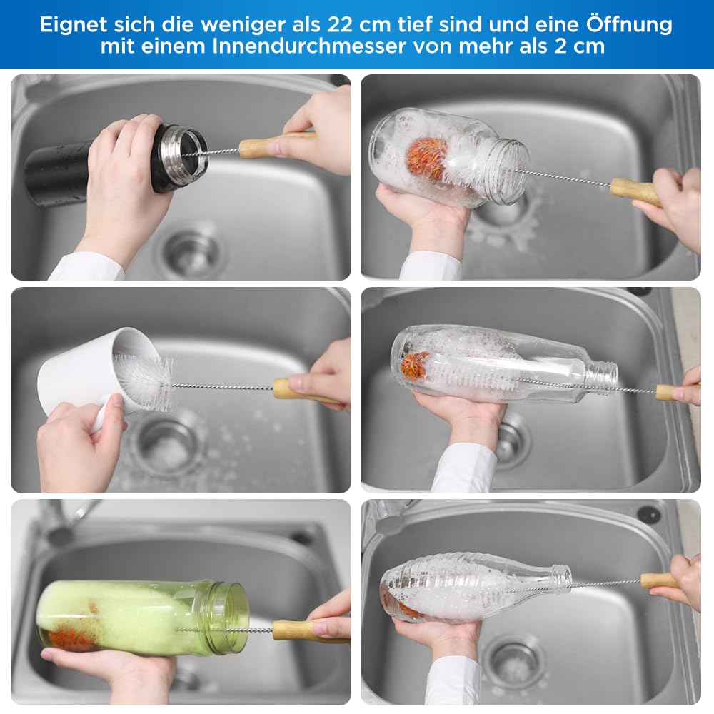 Fond de Brosse Gourde avec poils en coton évite rayures du fond et blessures aux doigts. Design Non Abrasif] : Brosse Gourde avec fil métallique flexible maintenant des poils denses mi-durs, nettoie les bords internes des bouteilles. Fond de Brosse Gourde avec poils en coton évite rayures du fond et blessures aux doigts [Nettoyage Efficace] : Brosse Nettoyage Bouteille avec manche en bois ergonomique, poils haute densité allongés atteignent fond et parois des bouteilles. Tête large pour nettoyage rapide de bouteilles d'eau gazeuse, cruches, bouteilles d'huile etc. [Application Polyvalente] : Goupillon Gourde très adapté pour nettoyer diverses formes de Bouteilles D'eau Gazeuse, Bouteille Verre, cruches, vases, bouteilles à col étroit, tasses, chopes à bière, biberons etc. ; tête étroite conçue pour les bouteilles à col étroit., - Élimine efficacement tartre, dépôts de lait, thé, etc. 3 Pcs Goupillon Bouteille En Verre Brosse Longue Nettoyeur Biberon Lave Bouteille Pour Laver La Sangle incluse pour suspension dans un endroit bien aéré., Évite les odeurs., - Tirer la poignée de haut en bas avec rotation pour nettoyer rapidement Bouteille Verre. [Séchage Facile] : Brosse Bouteille après usage, rincer à l'eau et secouer pour éliminer l'excès d'eau, séchage rapide sans attente prolongée. Vous Recevrez]Deux brosses à bouteille en deux tailles, 35 cm x 9 cm et 34 cm x 3,5 cm respectivement. Ils sont suffisamment longs pour atteindre facilement... Nettoyeur Bouteille Profond 2 Pcs Goupillon Bouteille, Ecouvillon Bouteille 35cm, Brosse Goupillon Paille nettoyage en profondeur Sans Résidus.