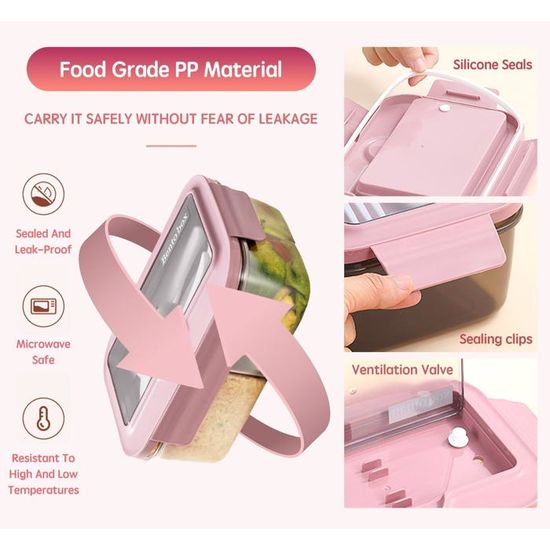 Le sac isotherme est pratique pour les voyages. Petits prix et livraison gratuite dès 25 euros d'achat sur les produits Astralong. Commandez 3 en 1 Bento Lunch Box 2800ml, Empilables, Assiette Compartiment Adulte Enfant avec Lunch Bag Couverts Partition, Micro-Ondable Anti-Fuite, Sans BPA, Boite Repas, Boîte à Goûter Travail Ecole Caractéristiques : Matériau : Plastique PP alimentaire sans BPA Capacité : 2 800 ml au total (3 couches) Dimensions : 22 x 16 x 12 cm (assemblé) Poids : 1 100 g (accessoires inclus) Plage de températures : -20 °C à 100 °C Inclus : boîte 3 couches, sac isotherme, fourchette, cuillère et 2 saucisses Conception étanche – Chaque niveau est doté d'une fermeture hermétique pour éviter les déversements. Design durable et résistant aux taches, avec des couleurs modernes. Kit repas complet – Comprend 1 fourchette, 1 cuillère, 2 boîtes à sauce et des séparateurs amovibles pour des repas équilibrés. Lavage à la main recommandé pour une durée de vie optimale. KATELUO Lunch Box, Bento Box 1400ML, Bento Lunch Box, Boite Repas avec Préparation et nettoyage faciles des repas – Compatible micro-ondes (≤ 100 °C), congélateur et lave-vaisselle (lavage du couvercle à la main recommandé). Pourquoi choisir notre boîte à bento ? → Ingénierie intelligente : séparateurs amovibles pour une séparation parfaite des aliments → Fraîcheur toute la journée : le sac isotherme maintient la température idéale des repas → Toucher premium : finition mate résistante aux traces de doigts et aux taches → Conception universelle : couleurs sophistiquées pour tous les âges et tous les styles Utilisez 1, 2 ou les 3 niveaux : parfait pour les déjeuners des enfants ou les portions des adultes. Bento Lunch Box Boite Repas Pour Adulte Avec 3 Compartiment Lunchbox... Boîte Repas 2800ml Compartiments Tohoee Boite Bento Lunch Box 1400ml Boite Repas Box Enfant Adulte 3 Compartiments Boîte à Lunch Boîte Déjeuner étanche Micro-ondable Sécurité alimentaire haut de gamme – Fabriquée en PP alimentaire sans BPA, cette boîte à lunch garantit des repas sains pour les adultes et les enfants.