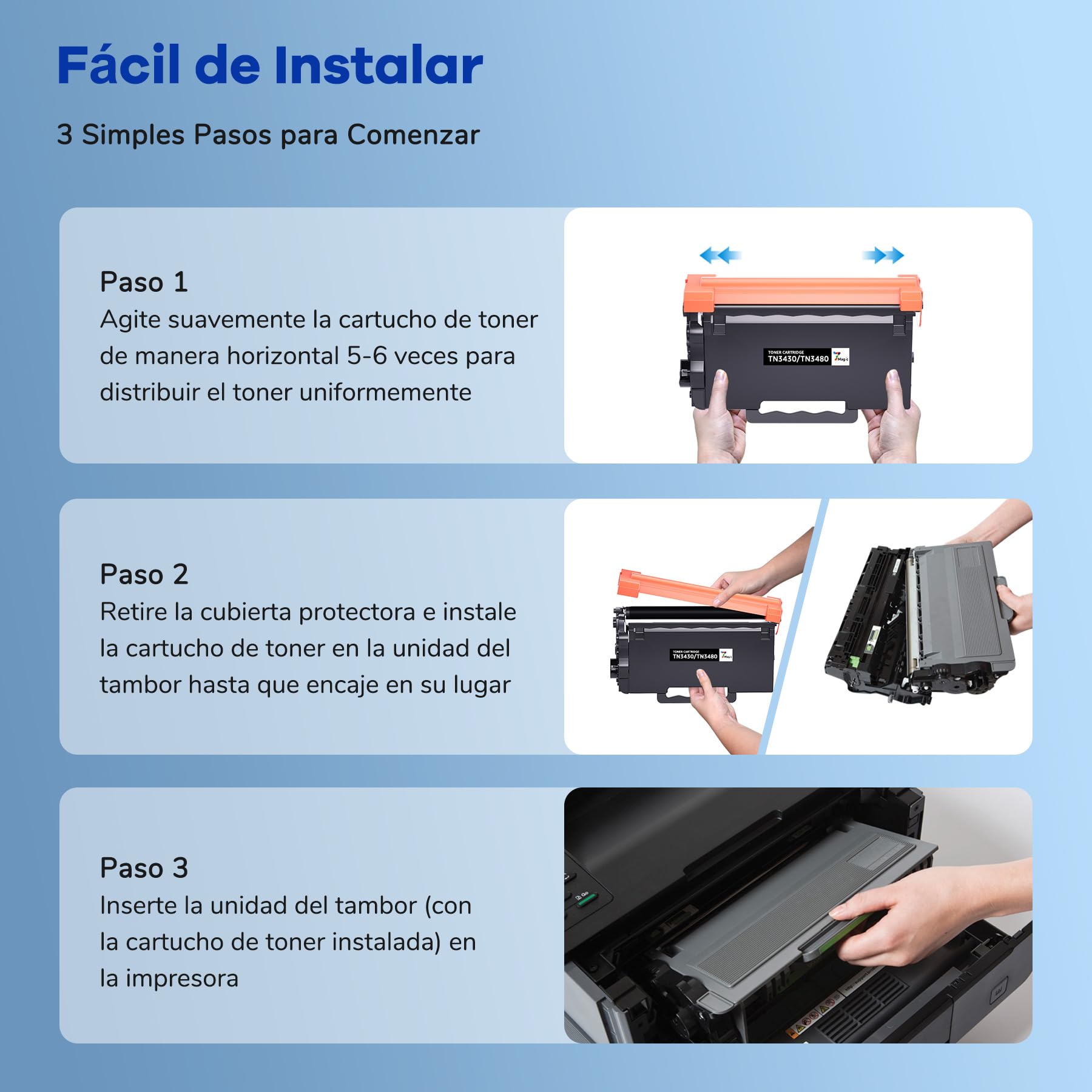 Images nettes, impressions supérieures : Le toner TN3480 utilise des particules nano et une filtration avancée pour des impressions fluides et uniformes. 7Magic TN3480 Toner Cartridge Compatible with Brother TN-3480 TN3480 TN-3430 TN3430 TN 3480 TN 3430 MFC-L5750DW HL-L5100DN HL-L5200DW HL-L6300DW DCP-L5500DN MFC-L5700DN HL-L62500 DN Black, 2-Pack : : ComputersAbout this item Efficient Recognition, Optimized Print Quality Il offre des noirs riches et profonds avec une excellente adhérence, garantissant des détails précis dans les textes comme dans les images. En quelques gestes rapides, il se connecte facilement à votre imprimante, sans outils supplémentaires ni assistance technique. Chaque cartouche est soigneusement emballée afin d’éviter les fuites de toner et la casse, garantissant ainsi une réception du produit en parfait état Brother Tn-3480 BAISINE TN3480 TN3430 Kompatibel Für TN-3430 Schwarz Toner Für Brother HL-L5100DN MFC-L5750DW Toner HL-L5000D HL-L5200DW HL-L5100DNT HL -L6300DW MFC-L5700DN HL-L6400DW DCP-L5500DN Brother Tn 3480 Toner Kaufen Compatibilité parfaite pour une impression efficace : La cartouche de toner TN3480 TN-3480 est compatible avec un large éventail d’imprimantes populaires, notamment les modèles suivants : HL-L5000D, HL-L5000DN, HL-L5100DN, HL-L5100DNT, HL-L5100DNTT, HL-L5200DW, HL-L5200DWT, HL-L5200DWLT, HL-L6200DW, HL-L6200DWT, HL-L6250DN, HL-L6250DW, HL-L6300DW, HL-L6300DWT, HL-L6400DW, HL-L6400DWT, HL-L6400DWTT; MFC-L5700DN, MFC-L5700DW, MFC-L5700DNLT, MFC-L5750DW, MFC-L5800DW, MFC-L5850DW, MFC-L5900DW, MFC-L6700DW, MFC-L6750DW, MFC-L6800DW, MFC-L6800DWT, MFC-L6900DW, MFC-L6900DWT; DCP-L5500DN, DCP-L5600DN, DCP-L5650DN, DCP-L6600DW Son design plug-and-play vous fait gagner un temps précieux, parfait pour les environnements de travail exigeants Protection sans dommage, livraison en toute sécurité : Le toner TN3480 TN3430 est doté d’un emballage résistant à double couche, avec une boîte extérieure rigide et un film protecteur intérieur pour éviter tout dommage pendant le transport. Durée de vie prolongée, jusqu’à 8 000 pages : La cartouche de toner noir TN3480 offre une durée de vie impressionnante, permettant d’imprimer jusqu’à 8 000 pages — soit 150 % de plus que les modèles standards. Compatible Brother TN3480 / TN-3480 Negro Cartucho De Toner P 1948 Optez pour le TN3480 pour des volumes d’impression élevés, afin de gagner du temps et d’optimiser vos ressources Achat Toner compatible - Brother TN 3480 TN-3480 - 61.99 euros | COMPATIBLE, pas cher dont le modele est le code article C-TN3480. Votre cartouche de toner BROTHER C-TN3480 au meilleur prix, et retrouvez nos offres pour toner BROTHER C-TN3480 NOIR et pour le toner laser C-TN3480 NOIR