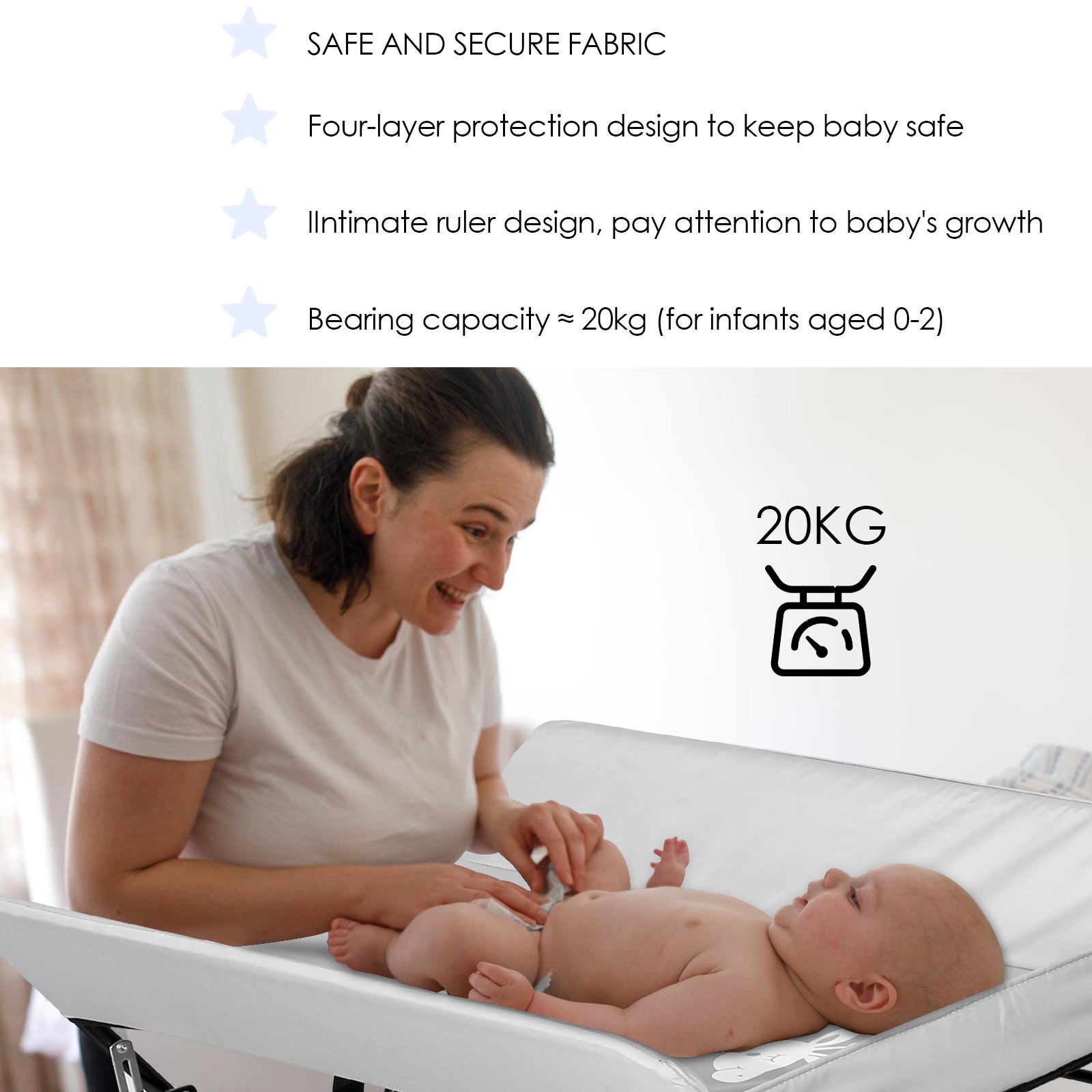Description du produit Supfine Table à Langer Bébé Portable et Pliable 1-Découvrez cette table à langer pliable innovante qui simplifie le quotidien des parents. Supfine Table à Langer Bébé Portable et Pliable. 1-Découvrez cette table à langer pliable innovante qui simplifie le quotidien des parents. 2-Sa hauteur ajustable de 86 à 94 cm sur 5 positions permet une adaptation optimale à votre taille pour un confort maximal 2-Sa hauteur ajustable de 86 à 94 cm sur 5 positions permet une adaptation optimale à votre taille pour un confort maximal. 6-Dotée d'une tringle pour suspendre les vêtements et d'un lavabo intégré, cette table à langer grise s'harmonise parfaitement avec votre intérieur. DESIGN MULTIFONCTIONNEL: La table à langer permet de changer bébé, lui faire un massage, poser une baignoire ou même suspendre des vêtements – un allié pratique du quotidien Table Pliante Compacte Lavable Crème Supfine Table à Langer Pliante Avec Panier De Rangement Table Change Bébé Réglable 3-La surface de change spacieuse de 80 x 64 cm offre un espace généreux pour votre bébé. 8-Installation rapide avec les outils fournis, idéale pour les espaces limités. DIMENSIONS AJUSTABLES: Hauteur réglable de 86 à 94 cm avec une surface de change de 80 x 64 cm, idéale pour s'adapter à la taille des parents et réduire la fatigue dorsale 4-Équipée de roulettes universelles verrouillables, elle combine mobilité et stabilité. Table à langer portable pliable gris - HSTURYZ - Classique - Intemporel 5-La structure robuste supporte jusqu'à 15 kg et se plie facilement pour un rangement compact. Table à langer mobile pliable 3 en 1 avec panier de rangement, ceinture de sécurité et 4 roulettes, hauteur réglable, charge maximale 25 kg (gris) Matériaux de haute qualité : notre table à langer utilise un tissu Oxford et un cadre en fer