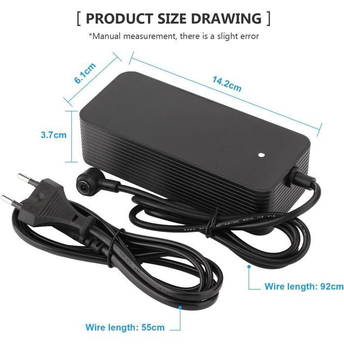 🛴【Qualité supérieure】 : technologie de rectification synchrone, réduisant la consommation de rectification de sortie, augmentant l'efficacité de conversion et réduisant la génération de chaleur. 🛴【Compatible pour】 : Xiaomi M365 pro/Ninebot, Xiaomi M365, Pro, Pro 2, Essentials, 1S, Ninebot Segway, Aovo, Aovo Pro, Pure Air Go, Inakim Quick 4 et beaucoup d'autres grandes marques, Es1 Es2 Es4 E22e E25e. RiuScooter Chargeur de trottinette électrique pour Xiaomi M365, Essential, 1S, Pro/2, Ninebot ES1, ES2, sortie : 42 V 2 A, pour batterie 36 V, pointe : 8 mm, avec LED d'avertissement : rouge et vert Il est compatible avec plein de modèles : M365, Pro, Ninebot Max G30, ES series, et même d'autres marques comme Pure Air ou AOVO. Il charge vite et a plein de... Le système de refroidissement en cuivre sans oxygène assure une conductivité thermique, une dissipation thermique rapide et une longue durée de vie. Trottinette électrique Xiaoi : Coparatif 2023 Des eilleurs - Avis La tête de douille est en cuivre pur et est plaquée de nickel pour éviter l'oxydation, le colmatage et les étincelles et assurer une résistance aux températures élevées Comprend de nombreux mécanismes de sécurité, notamment une protection contre les courts-circuits, les surtensions, les surintensités et la surchauffe interne. Compatible Gotrax Hiboy Aovo Pure Air HPGAAVD 42V 2A Chargeur Trotinette Electrique Pour Xiaomi M365,Pro,Pro 2,Mi 3,1s,36V Chargeur Universel Batterie Lithium Pour Ninebot G30/E/F Series,DC 8MM Prise Charrgeur Rapide Pour Scooter Chargeur Batterie Lithium 36v 🛴 Compatible pour : GOTRAX GXL DLX V2, G2, G3, G4, Apex, Glider, XR Elite, XR Ultra, G MAX Ultra, Jeton Bolt Pro electrick, Hiboy S2 Pro, Vibe Scooter batterie lithium-ion 36 V, Pure Air Go, Inakim Quick 4 et bien d'autres batteries 36V pour trottinette électrique, drift board, vélo électrique 🛴【Remarque】 : veuillez vérifier si votre adaptateur de charge est correct avant d'acheter. Sortie : DC 42V2A, Entrée : AC 100-240V 50/60Hz Chargeur universel intelligent et rapide pour lithium 36V, chargeur universel pour scooter électrique