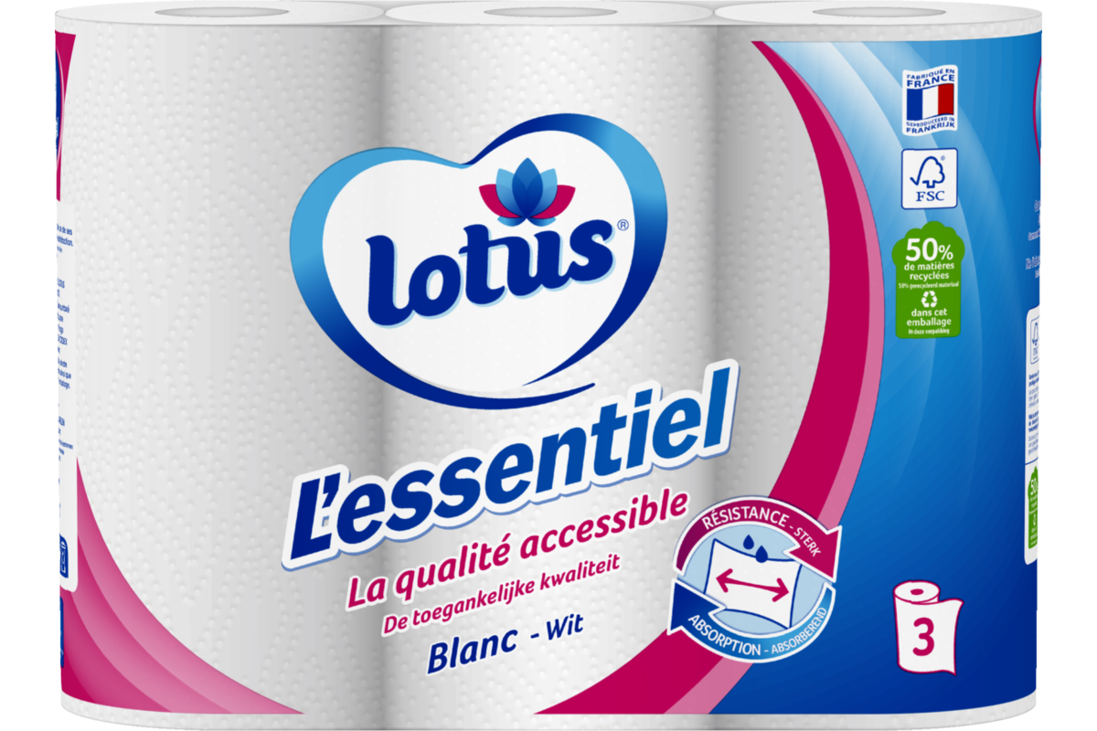 L'essuie-tout Lotus L'essentiel est absorbant et résistant Cuisine, ménage, tâches quotidennes … Le papier absorbant Lotus L'essentiel se plie à toutes vos exigences. Emballage majoritairement recyclable comportant au moins 50% de matières recyclées , Fabriqué en France Découvrez les essuie-tout Okay et les papiers toilettes Lotus Le rouleau papier absorbant Lotus est certifié FSC Promo Essuie-tout Lotus chez Cora Papier Toilette Humide Essuie-tout Demi-feuilles Compact = 4 Standards 2 Rouleaux Pas Lotus Essuie Tout Monoprix Les clients apprécient l'efficacité et la praticité des essuie-tout. Ils les trouvent utiles pour la cuisine et dépanner au quotidien pour les petites catastrophes